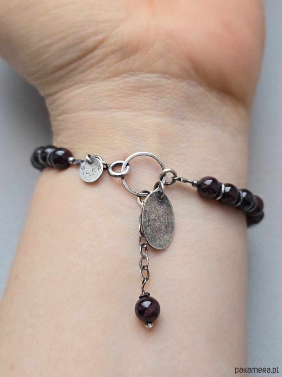 Wykończenie bransoletki to srebro pociemnione i przetarte.