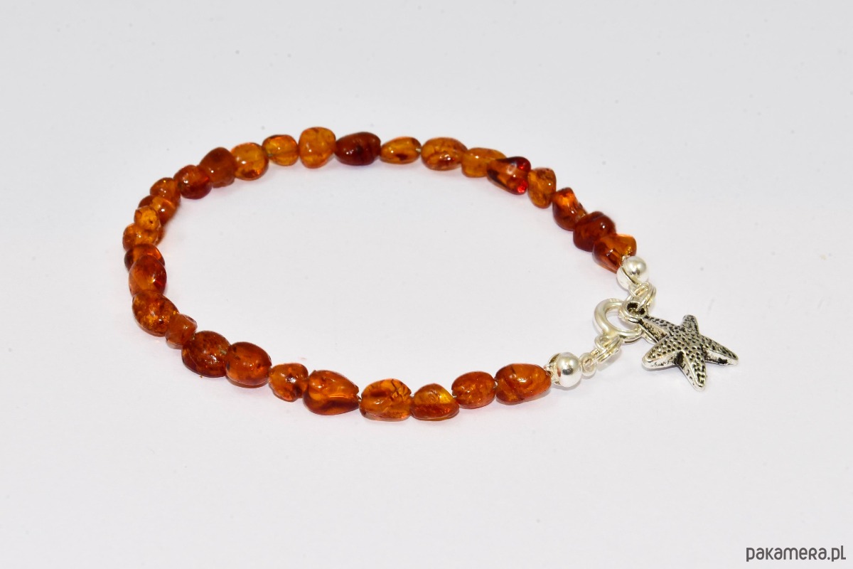 Delikatna i bardzo dziewczęca bransoletka z drobnych, nieregularnych kulek oszlifowanego bursztynu. Kształt i ciepła barwa sprawiają że bransoletka prezentuje się idealnie i na pewno nie zostanie niezauważona.