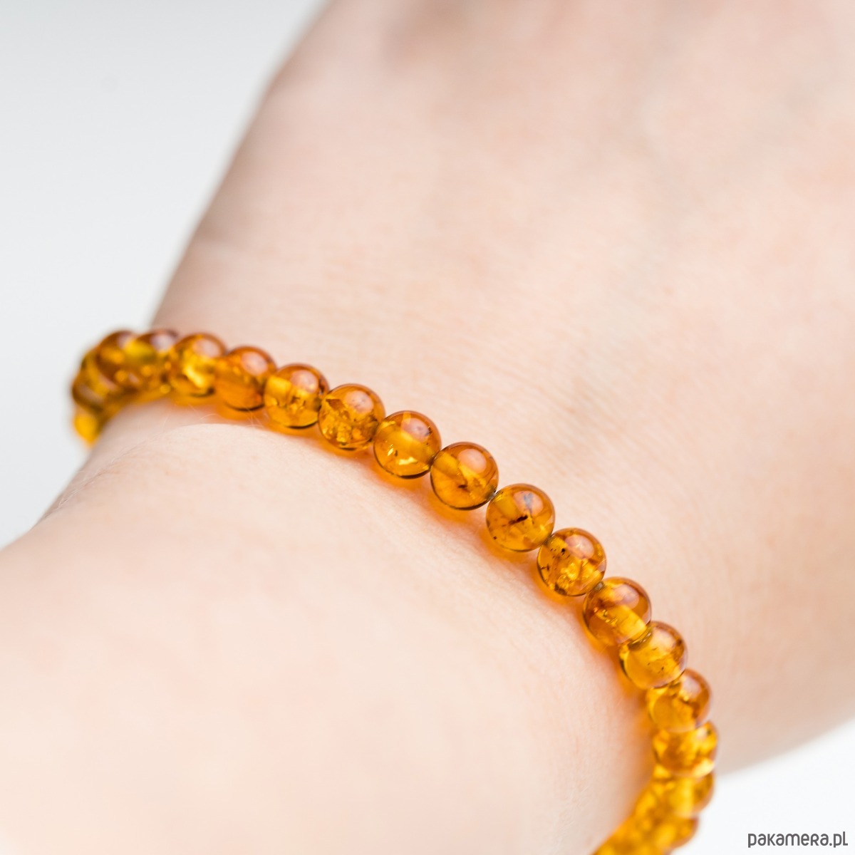 Bransoletka z bursztynu bałtyckiego – kulka 6 mm, 20 cm