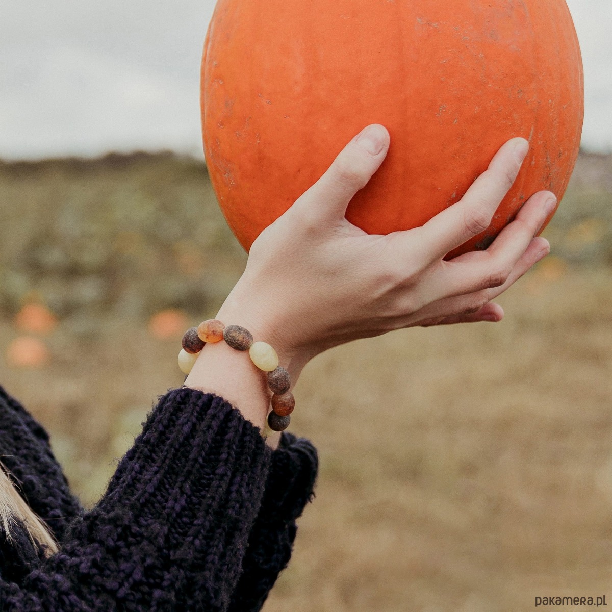 Kolorystyka: miks mlecznych, miodowych i ciemnych odcieni bursztynu