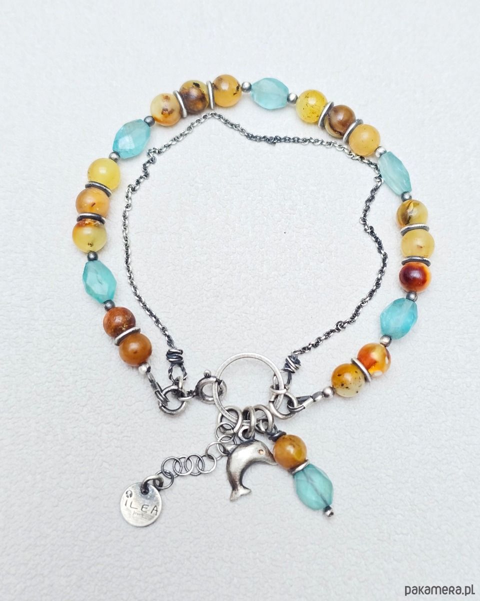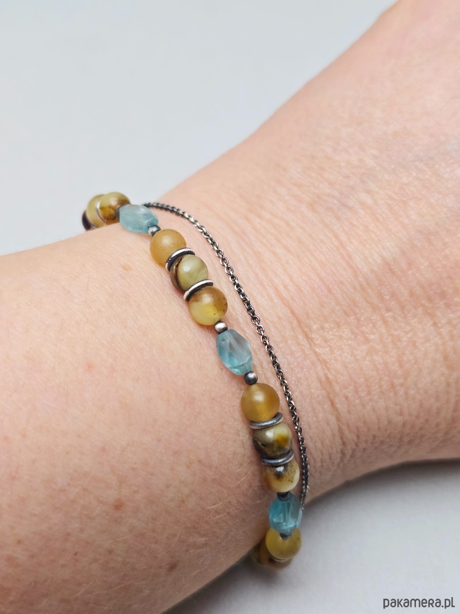 Unikatowa, podwójna i lekka bransoletka z minerałów i srebra.