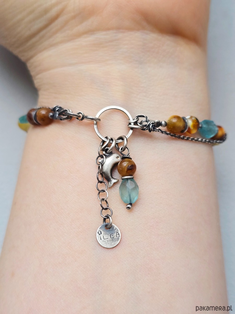 Wykończenie bransoletki to srebro próby 925 pociemnione i przetarte.