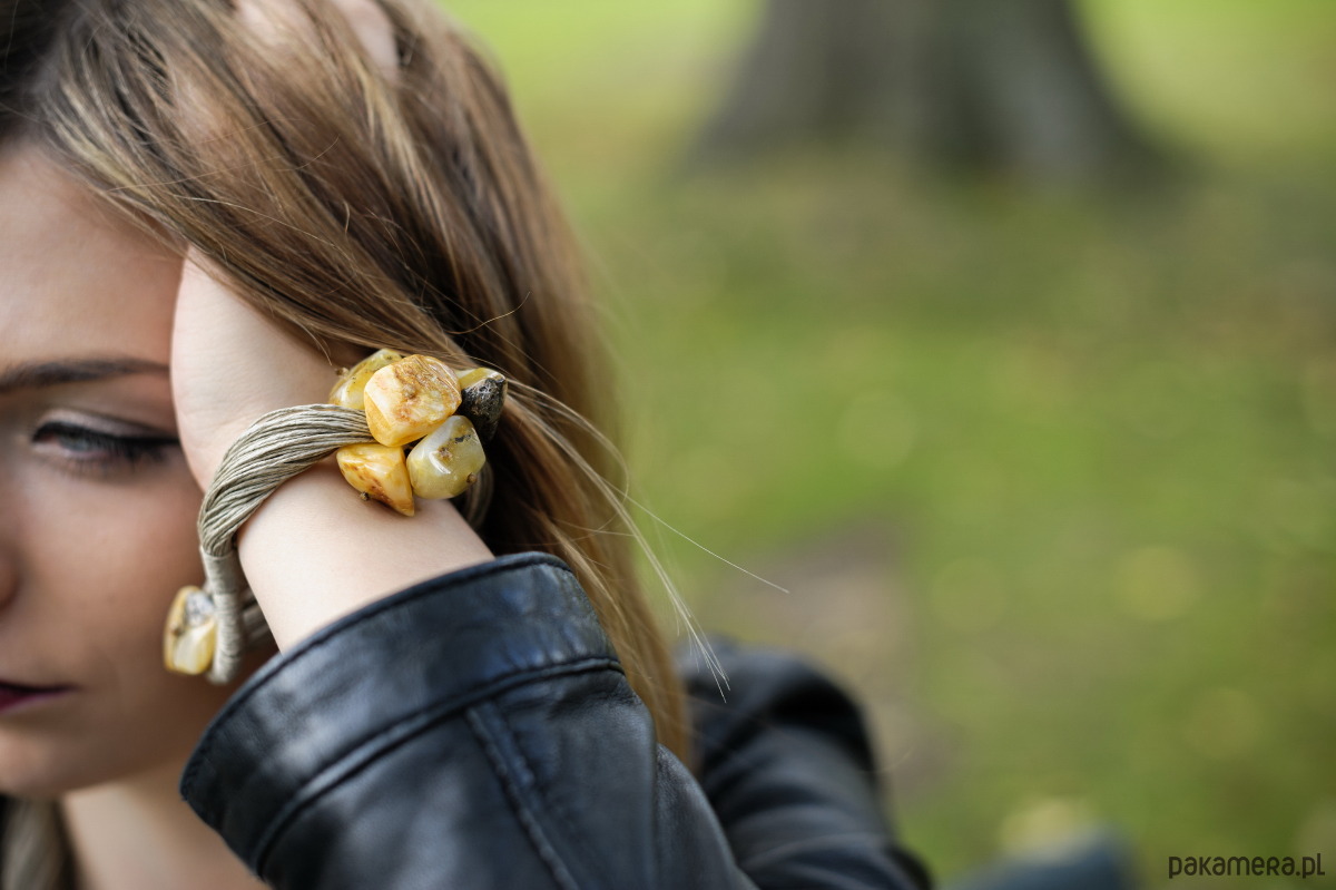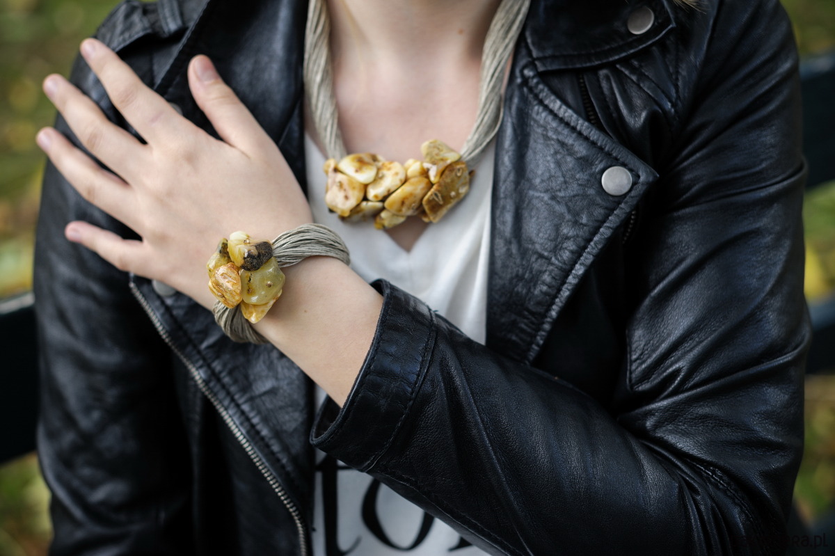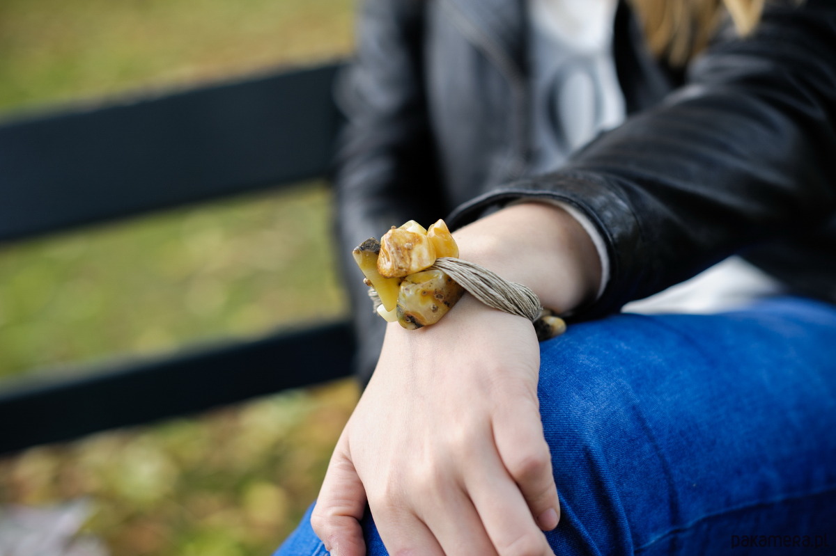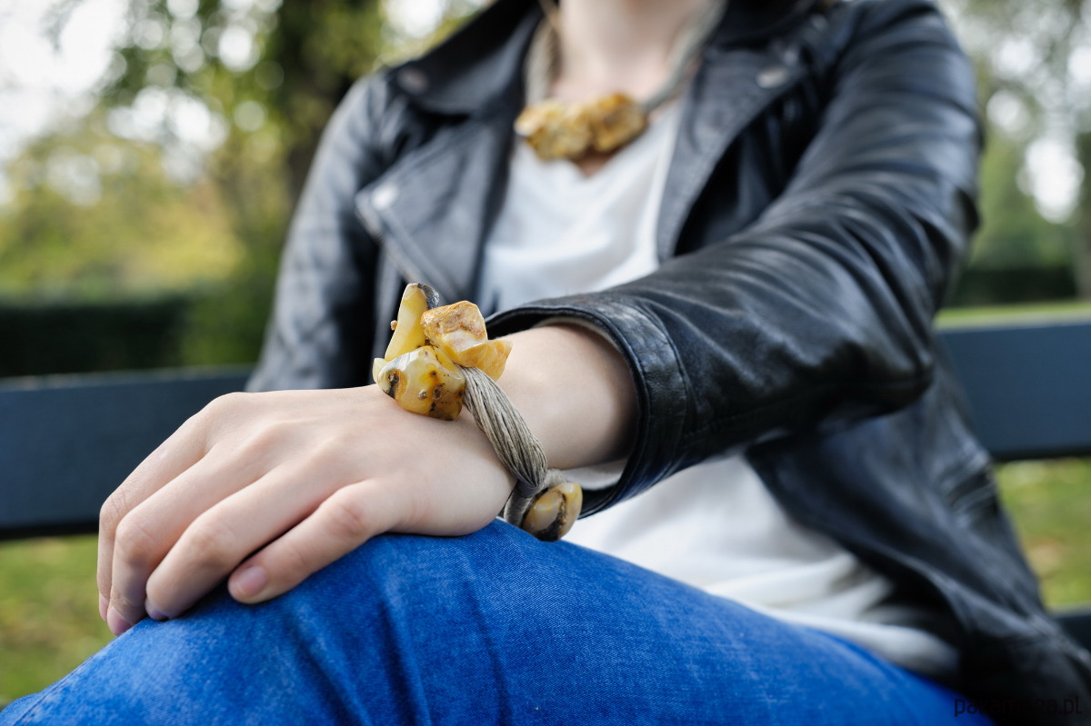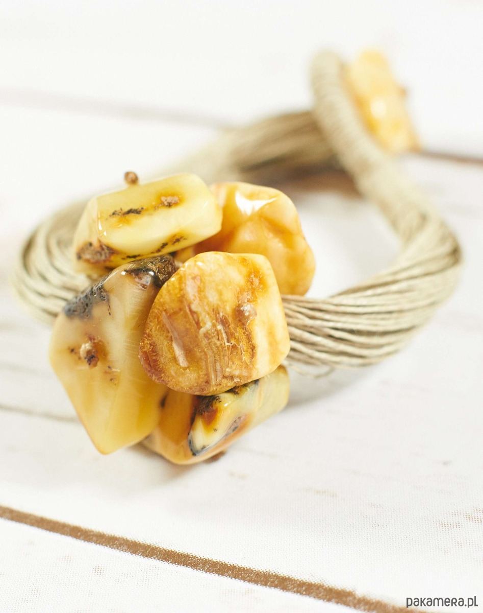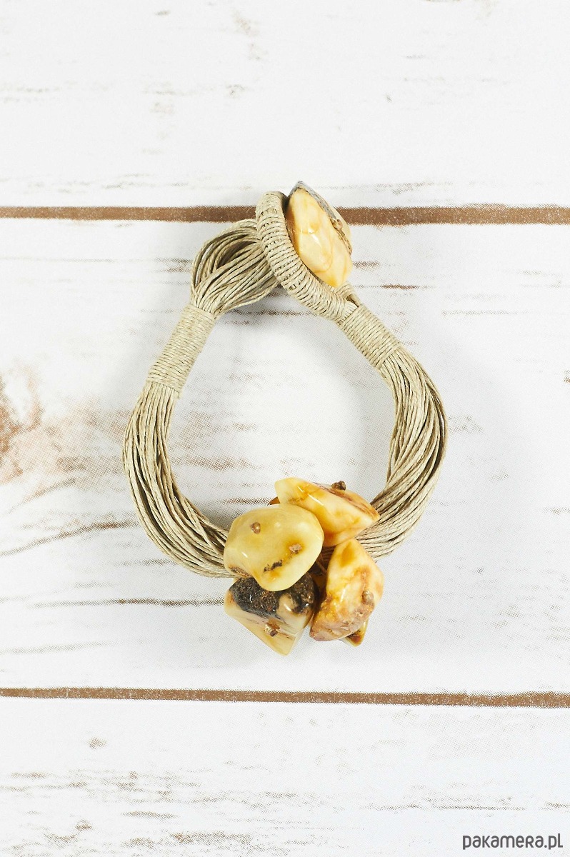 Bransoletka z bursztynu bałtyckiego w stylu rustykalnym/boho