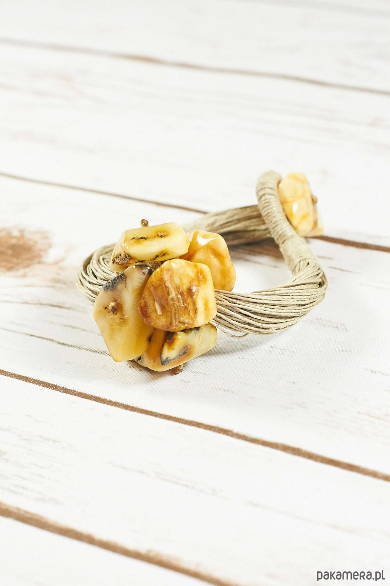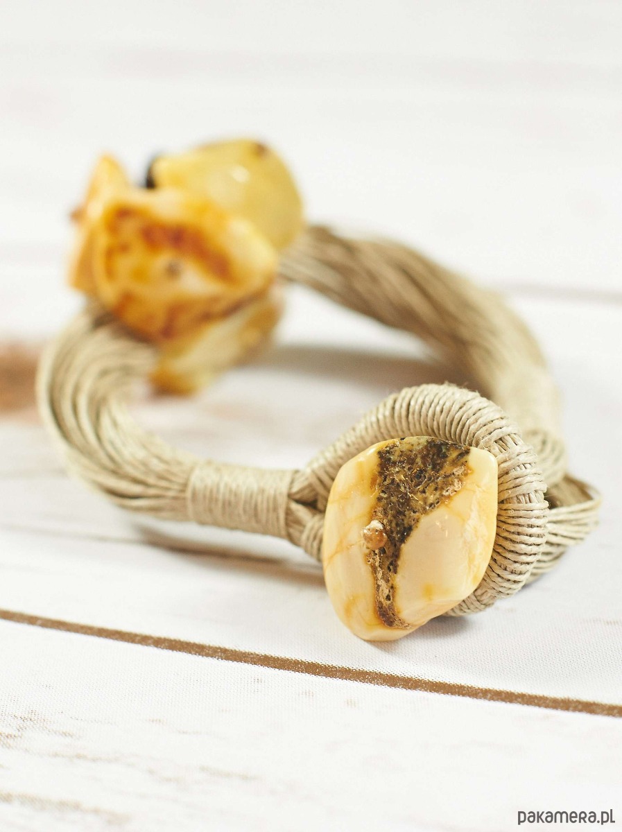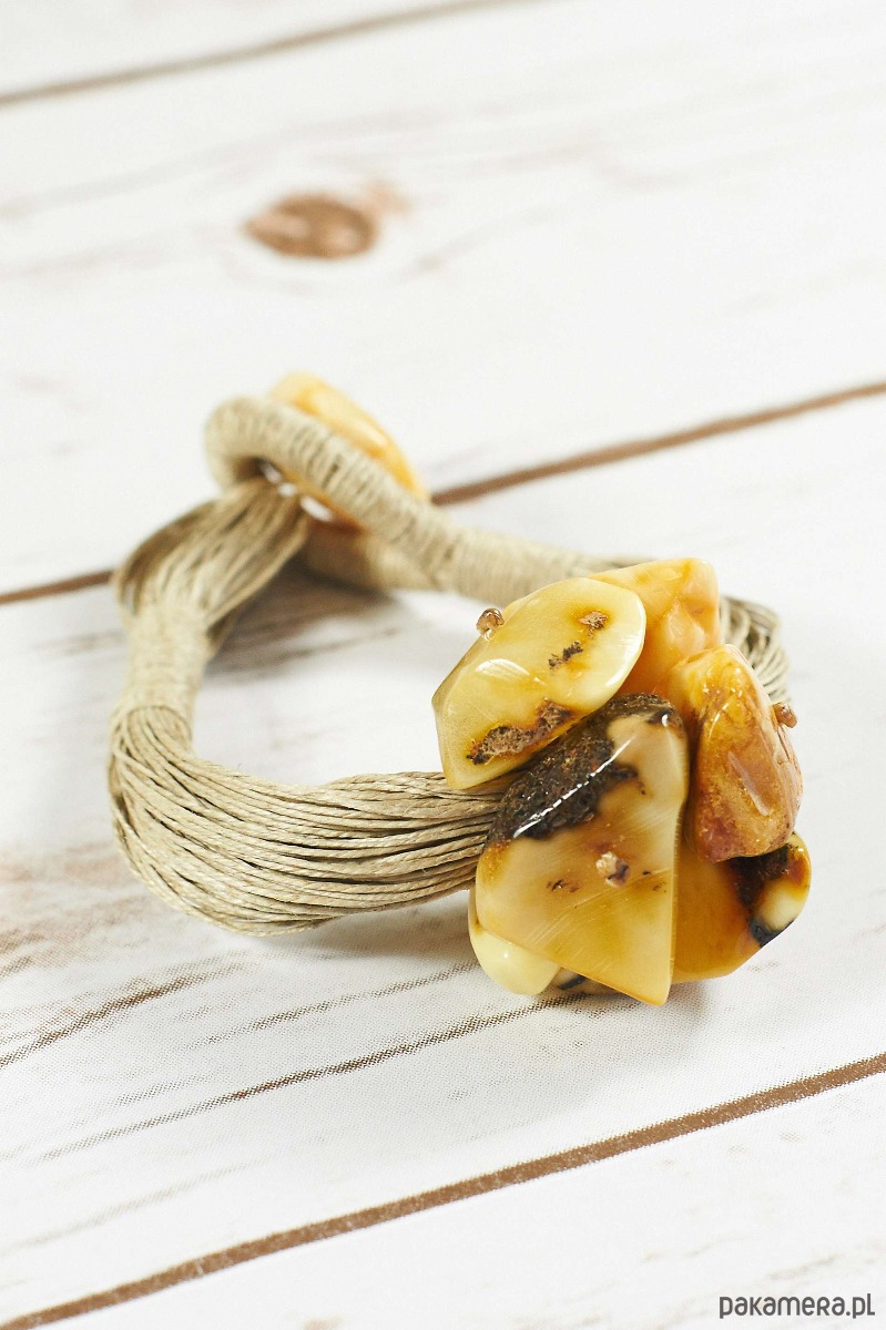 Bransoletka bursztynowa na lnie - bransoletka boho bursztyn