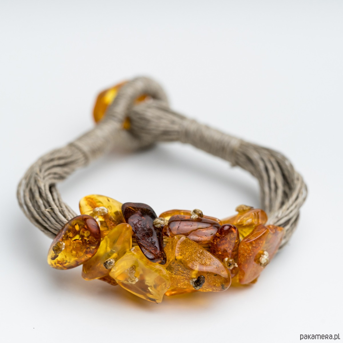 Bransoletka bursztynowa na lnie - bransoletka boho bursztyn