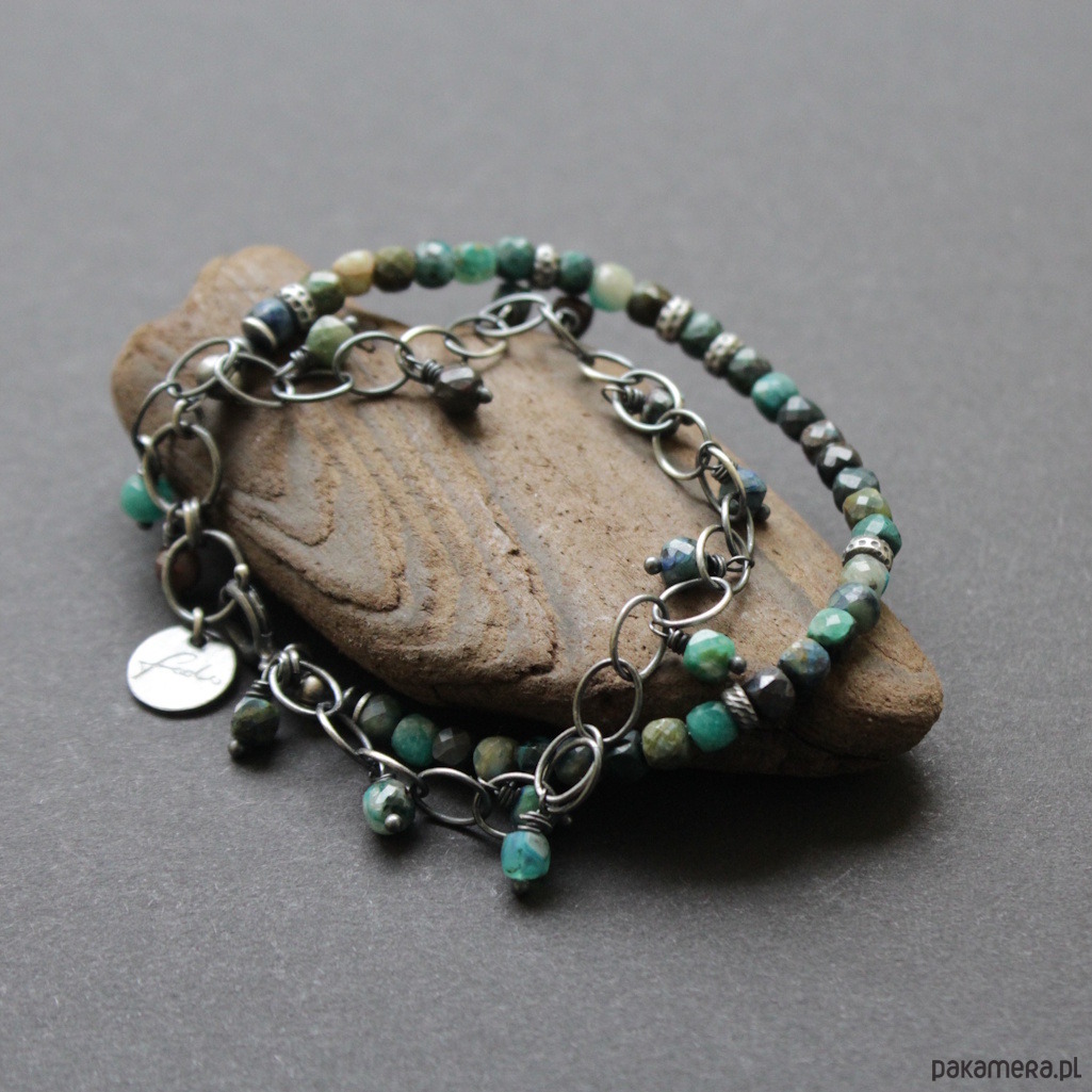 Bransoletka wykonana została z oksydowanego srebra oraz przepięknych kosteczek fasetowanych chryzokoli.