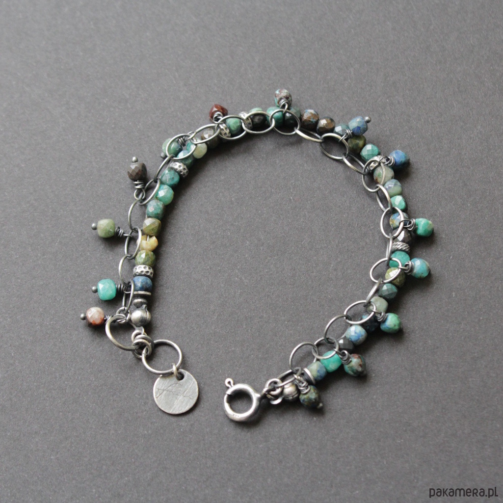 Bransoletka wykonana została z oksydowanego srebra oraz przepięknych kosteczek fasetowanych chryzokoli.
