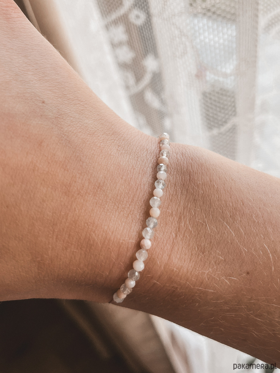 Bransoletka regulowana jest wygodnym, srebrnym lub pozłacanym stoperem, dzięki czemu łatwo można dopasować ją do nadgarstka. Rozmiar uniwersalny max. ok. 22 cm.