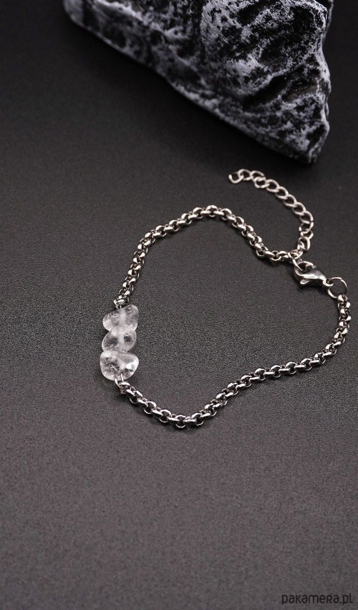 Minimalistyczna i elegancka bransoletka z naturalnym kryształem górskim to uniwersalna biżuteria, która podkreśla indywidualność i dodaje lekkości każdej stylizacji.