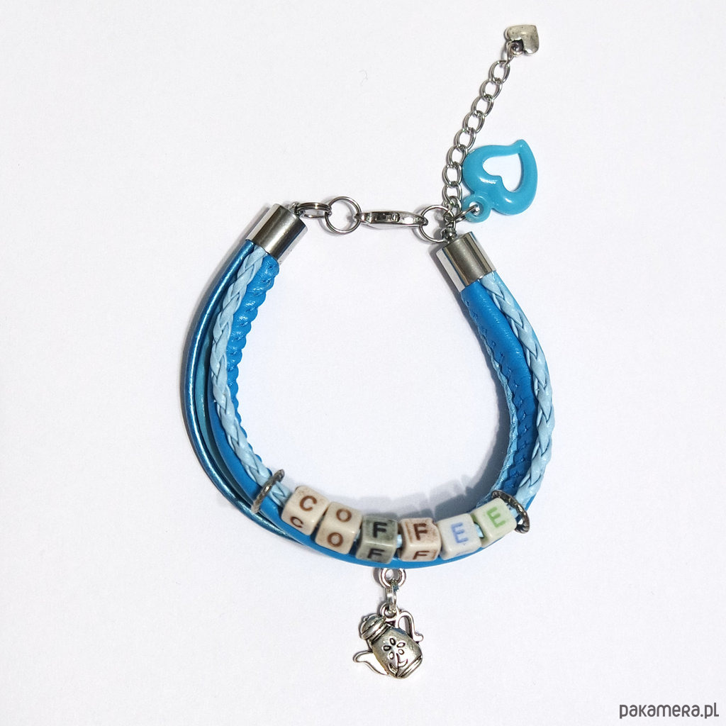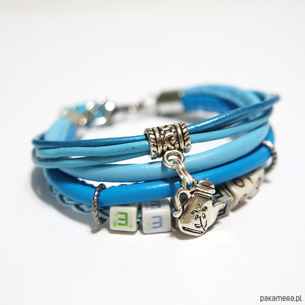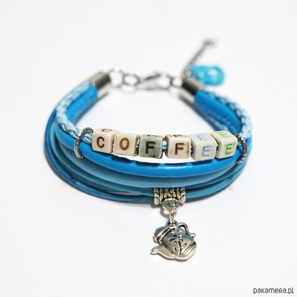 Bransoletka - Coffee - rzemienie, niebieska