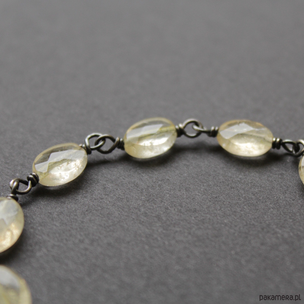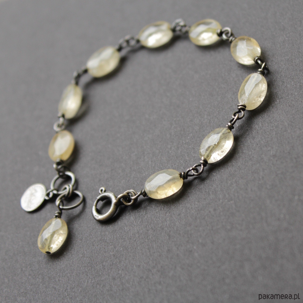 Bransoletka została wykonana z oksydowanego srebra próby 925 oraz fasetowanych cytrynów wielkości 0,7 - 0,9 cm.