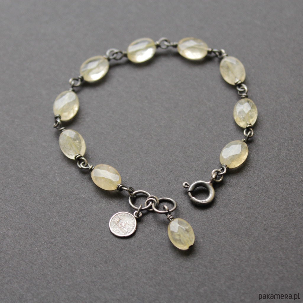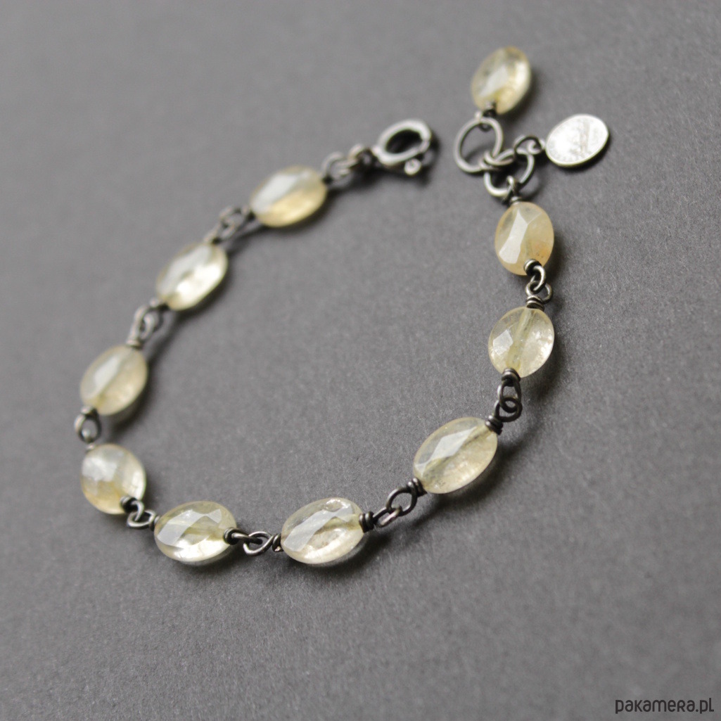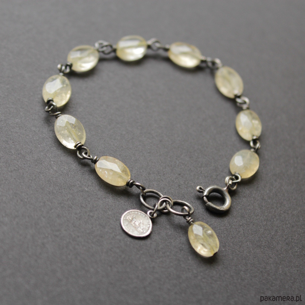 Bransoletka została wykonana z oksydowanego srebra próby 925 oraz fasetowanych cytrynów wielkości 0,7 - 0,9 cm.