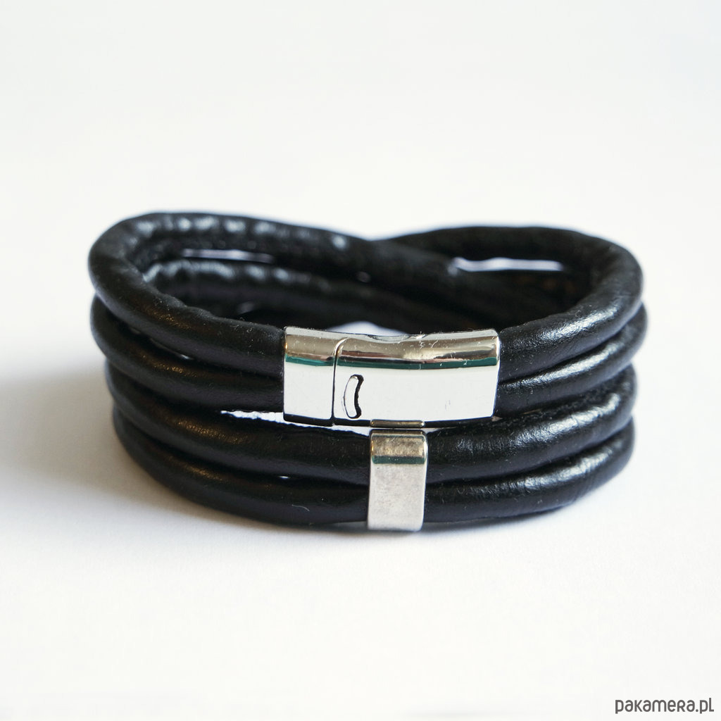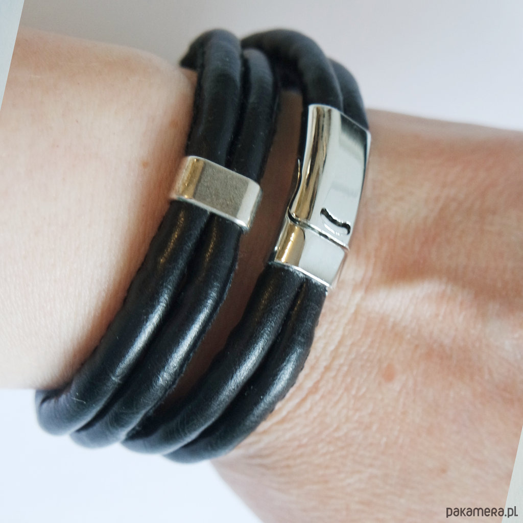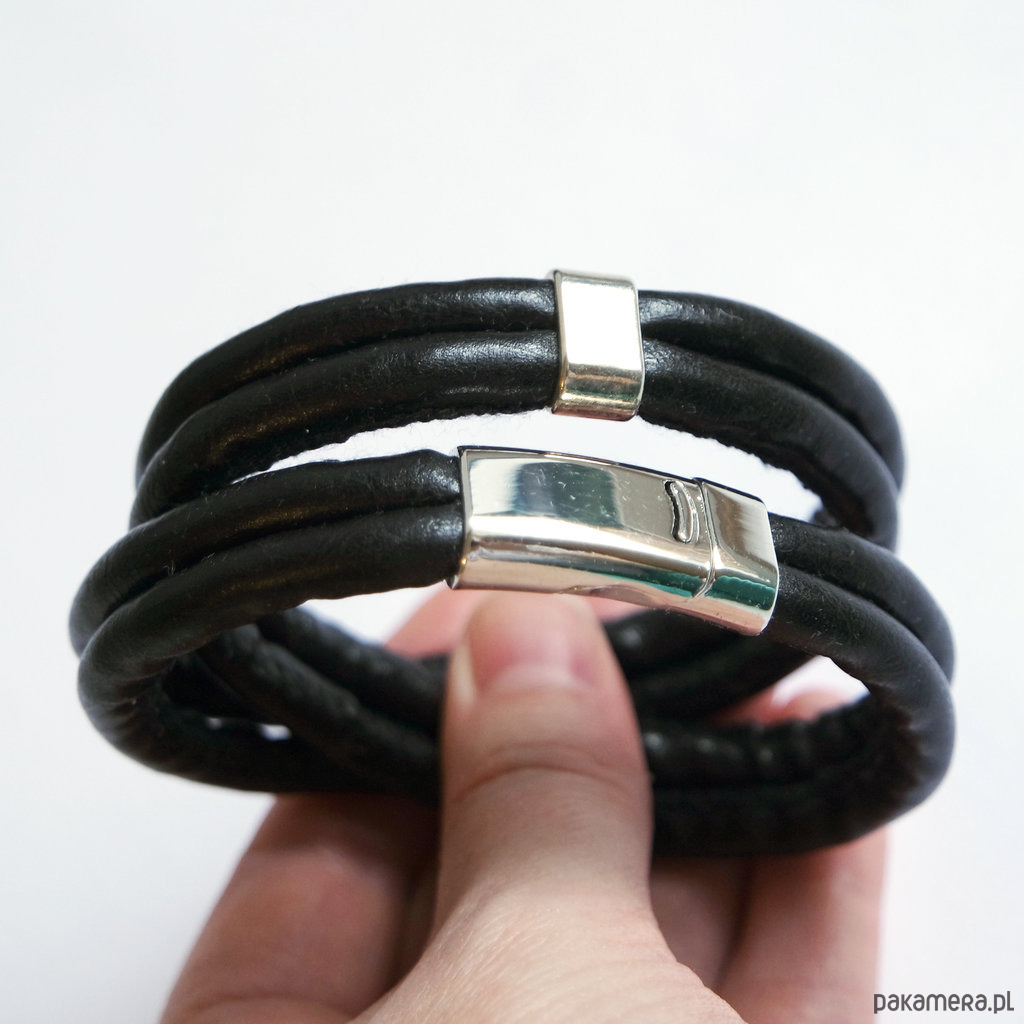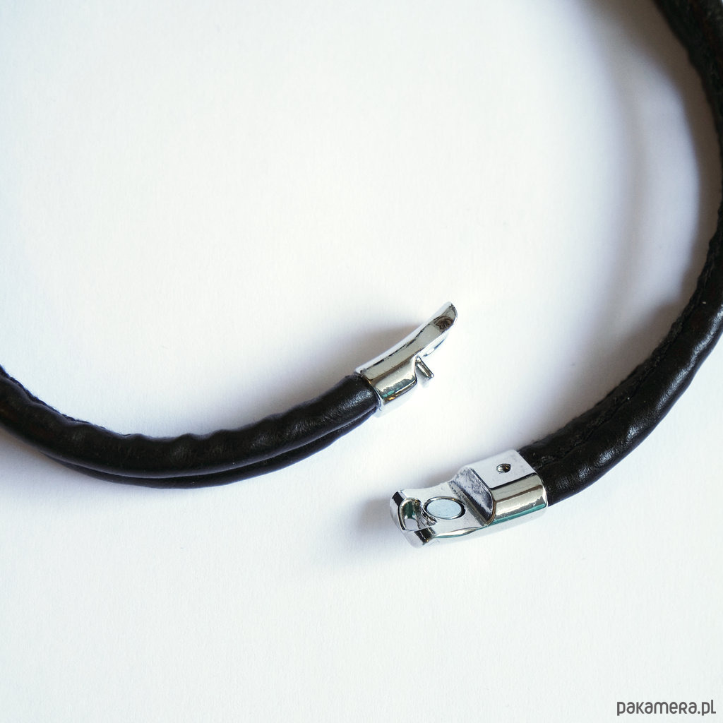 Bransoletka wykonana jest z rzemieni z eko-skóry.