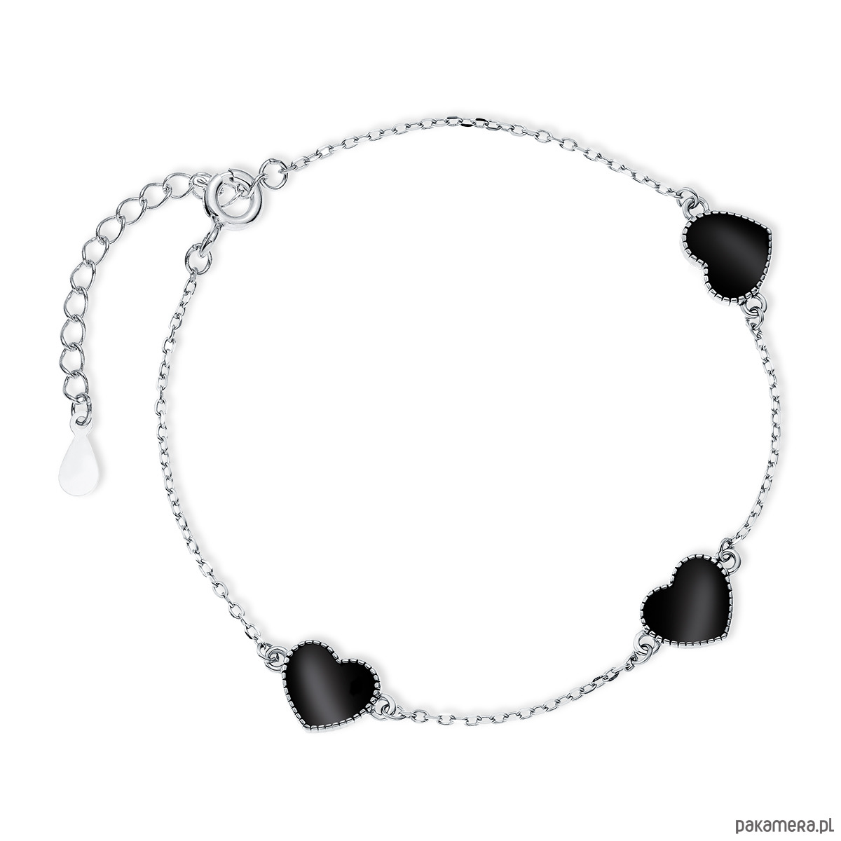 Bransoletka czarne serca srebro 925