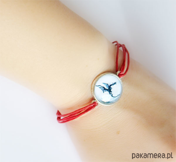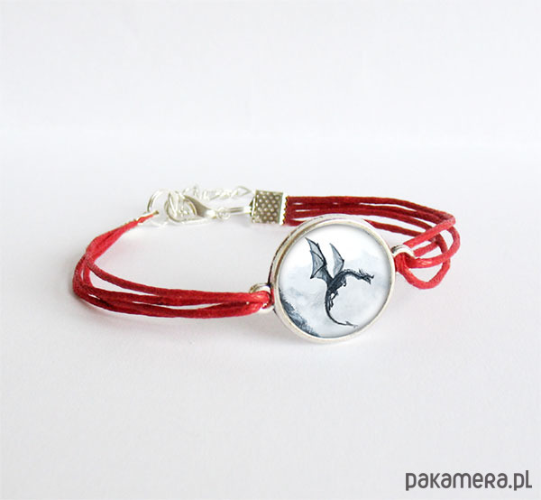 Bransoletka - Czarny smok - czerwona, sznurki
