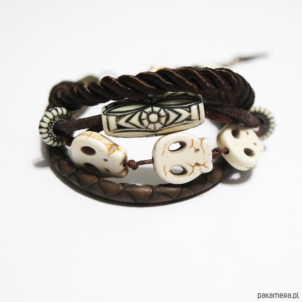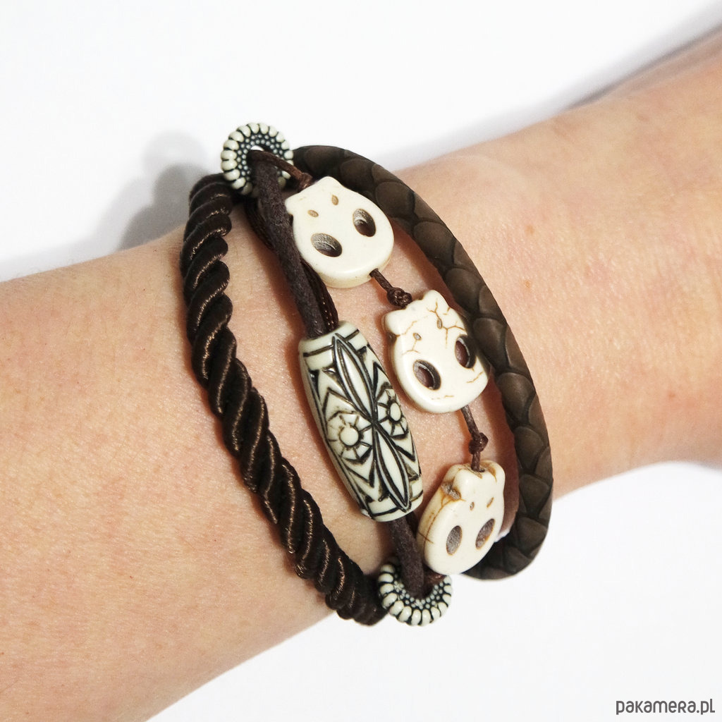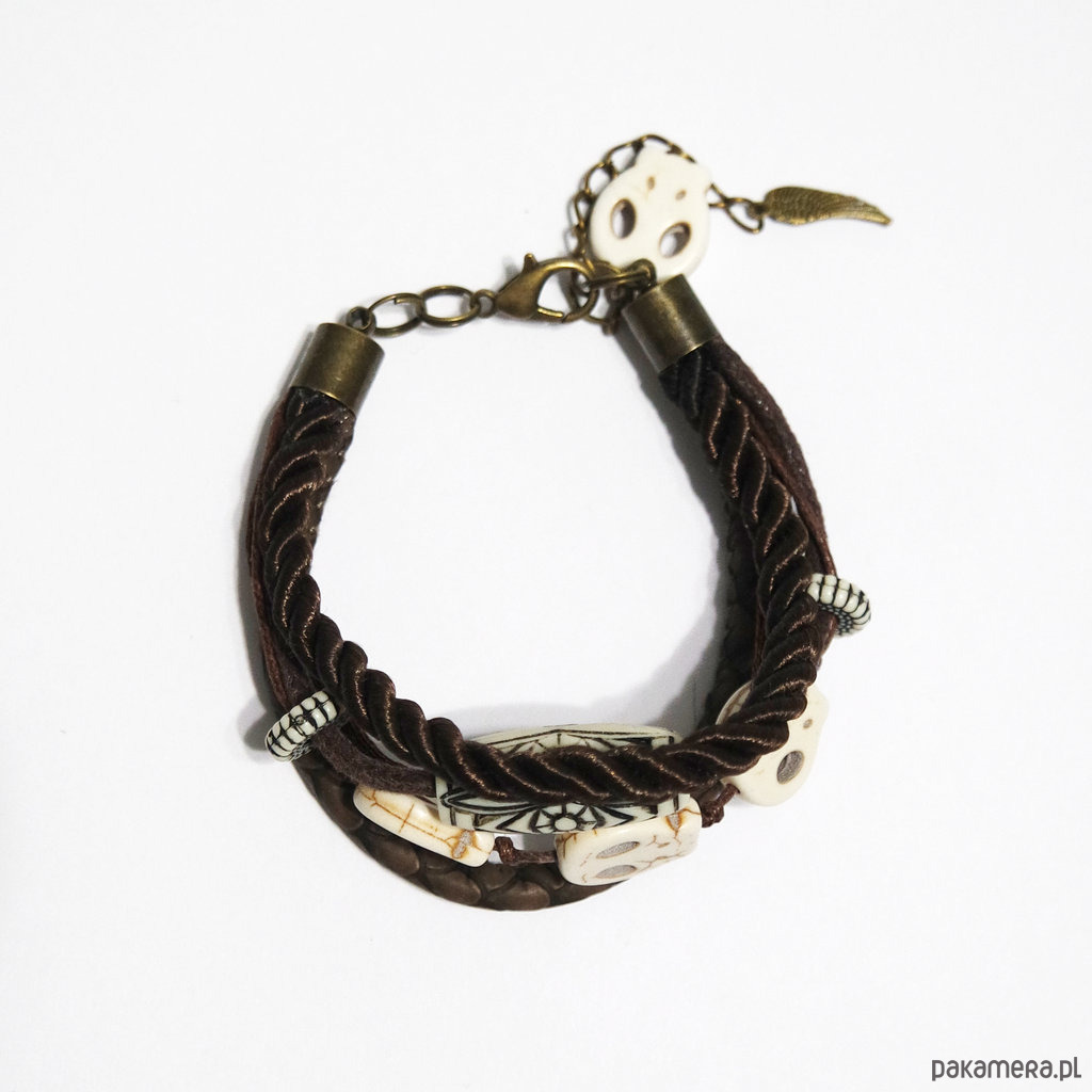 Bransoletka - Czaszki - brązowa
