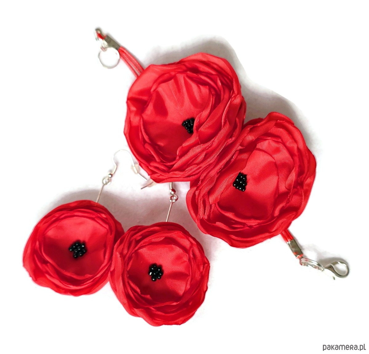 Bransoletka wykonana z materiałowych kwiatuszków, regulowana bransoletka, wielkość kwiatków ok.4cm,