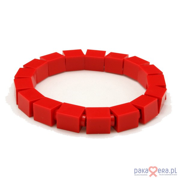 Czerwona, cienka bransoletka. Drobiazg w mocnym, soczystym kolorze. Najlepiej wygląda w połączeniu kilku w różnych kolorach. Ultralekka, wykonana z nowych klocków LEGO® na bardzo wytrzymałej, przezroczystej, elastycznej gumce ułatwiającej zakładanie i zdejmowanie. Obwód ok. 16,5 cm.