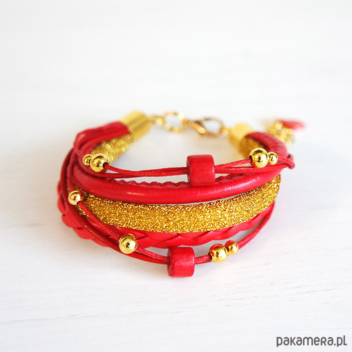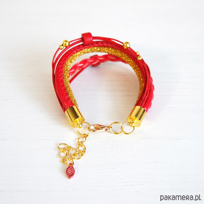 Bransoletka - Czerwona - złota