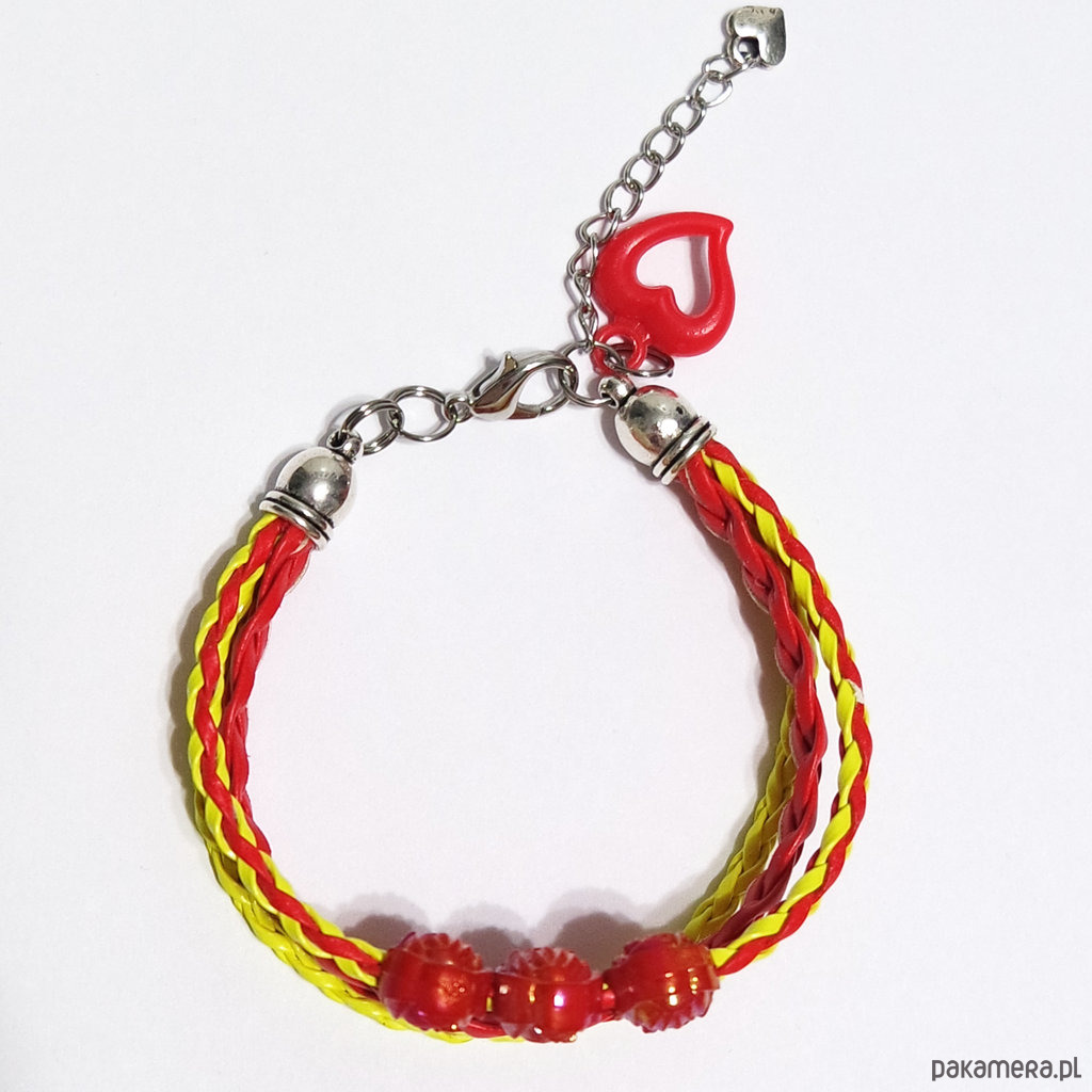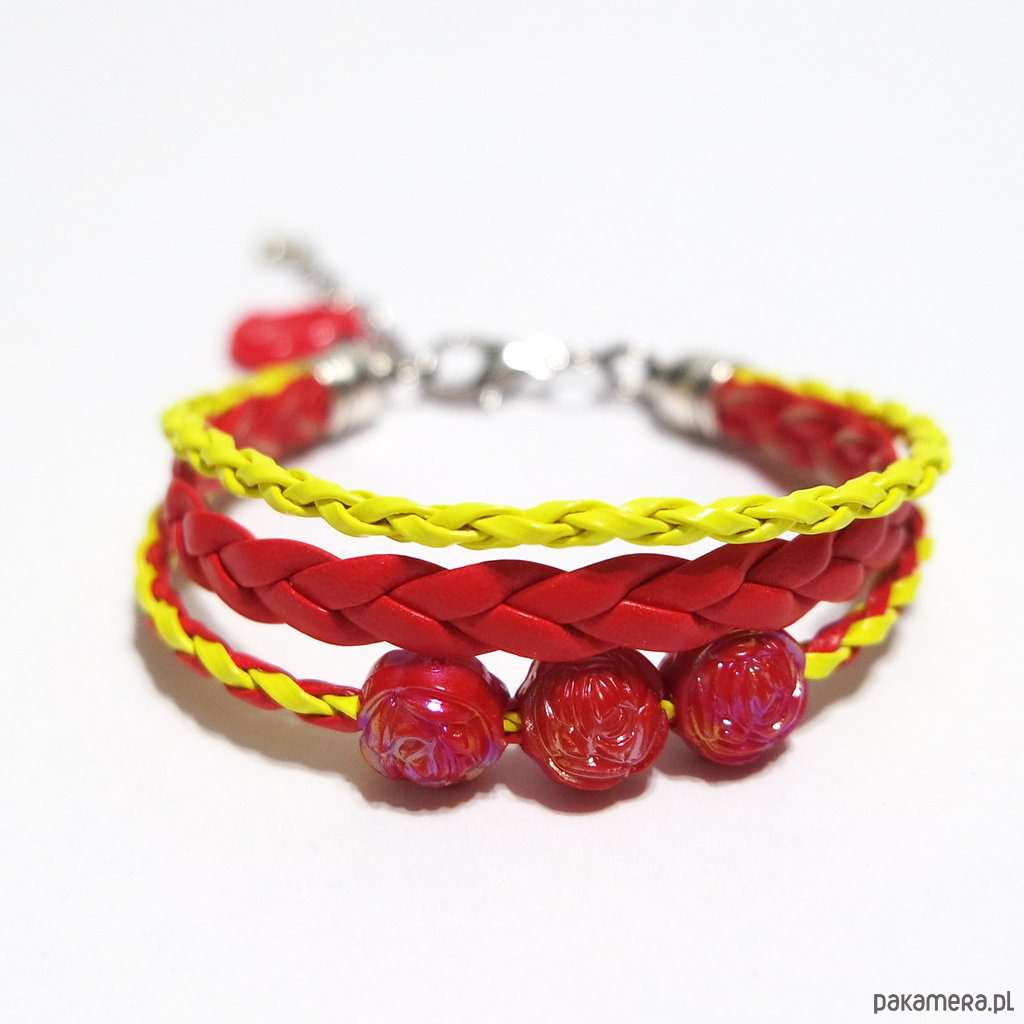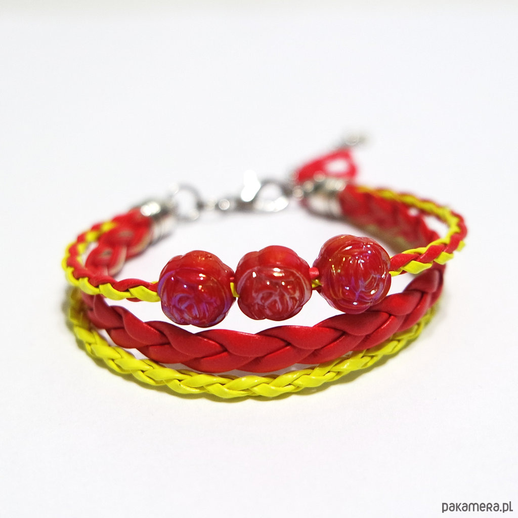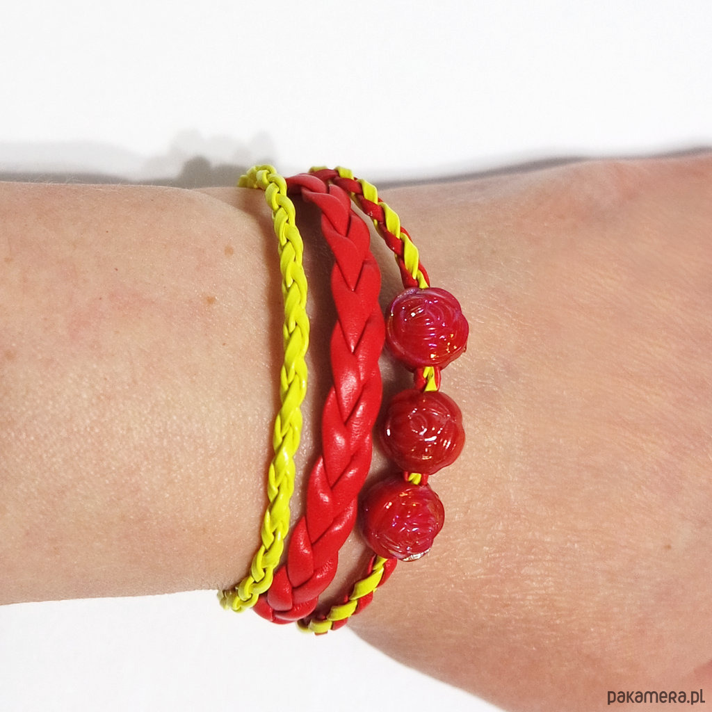 Bransoletka - Czerwona, żółta - rzemienie, neonowa