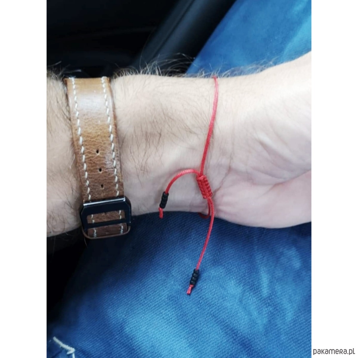 - jubilerski sznurek nylonowy w czerwonym kolorze, o grubości 1 cm