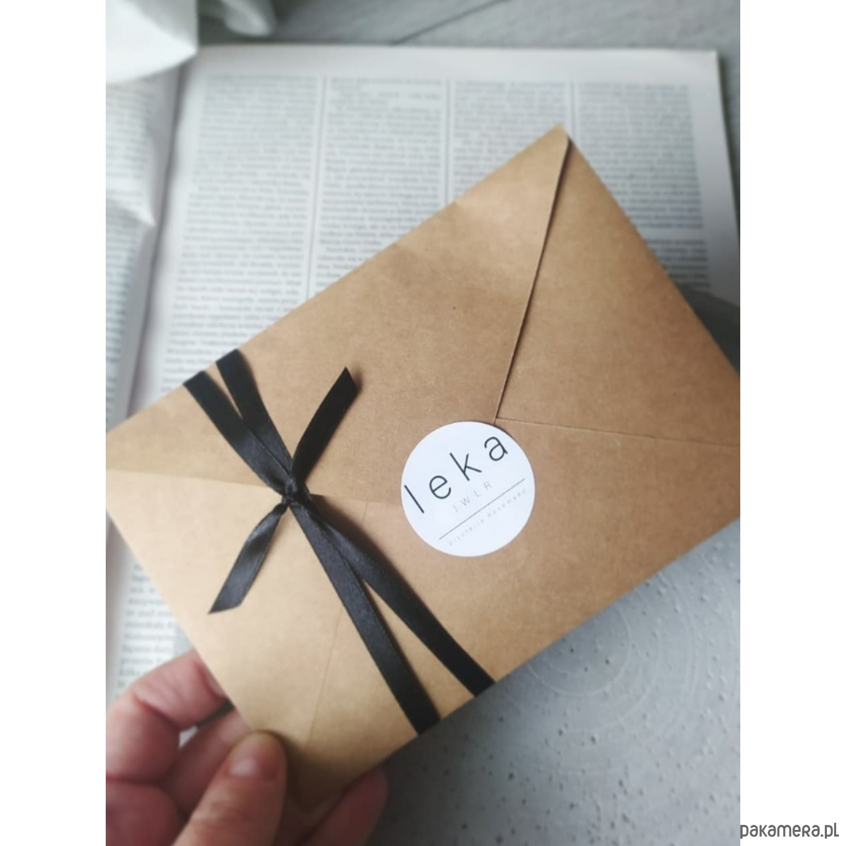 Biżuteria jest pakowana w woreczek z organzy oraz eko kopertę. Całość jest przepasana czarną wstążką, a uzupełnienie to naklejki i etykieta z logo. Nadaje się na prezent.