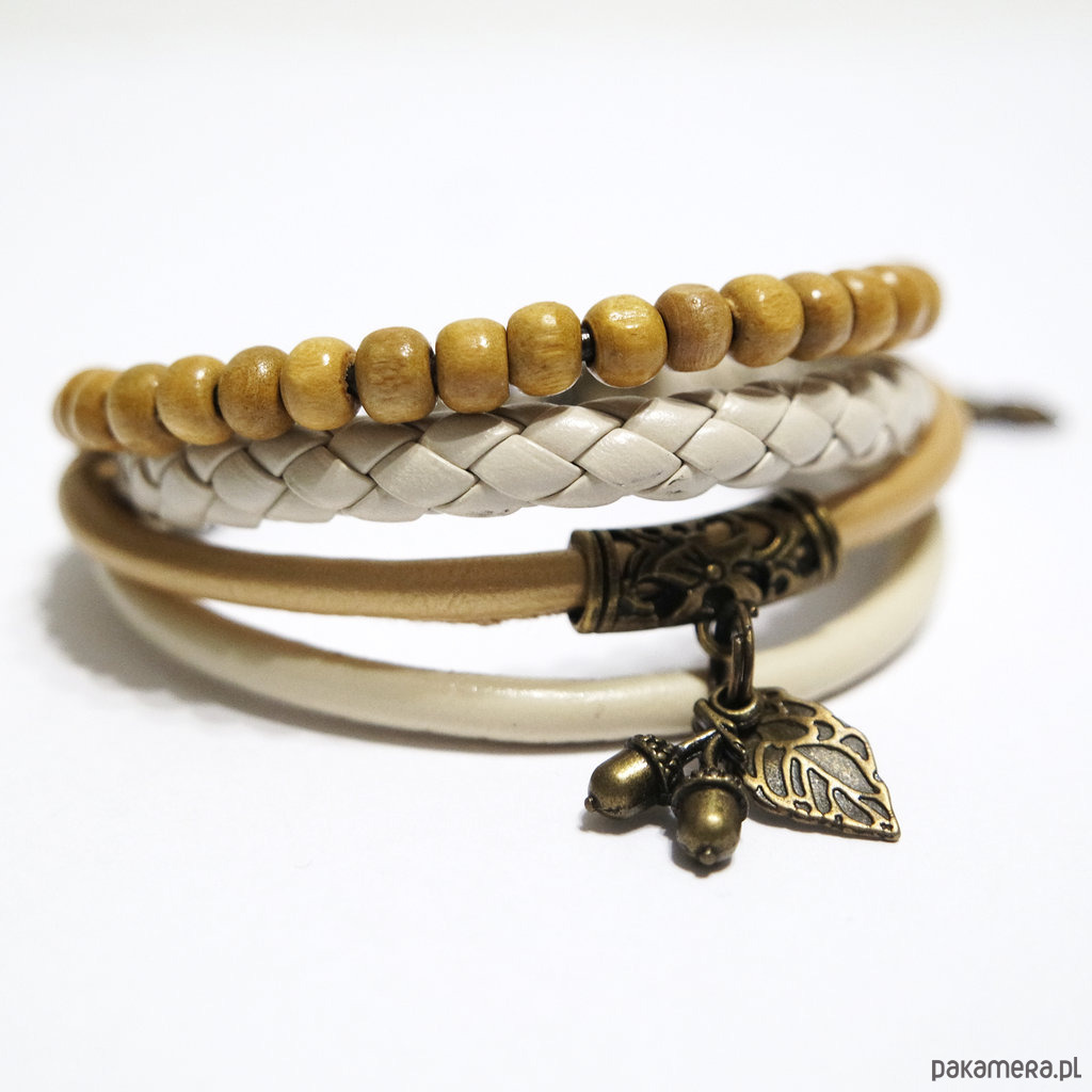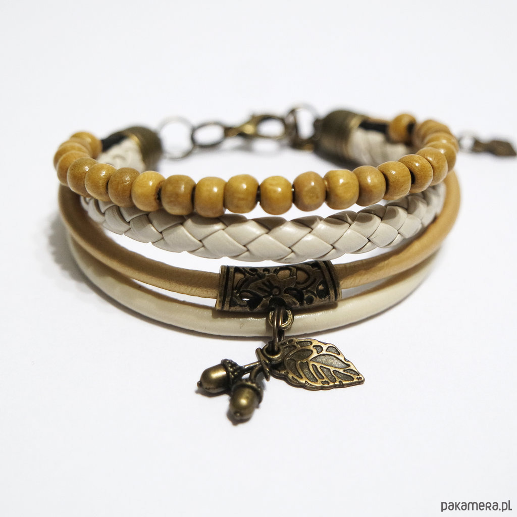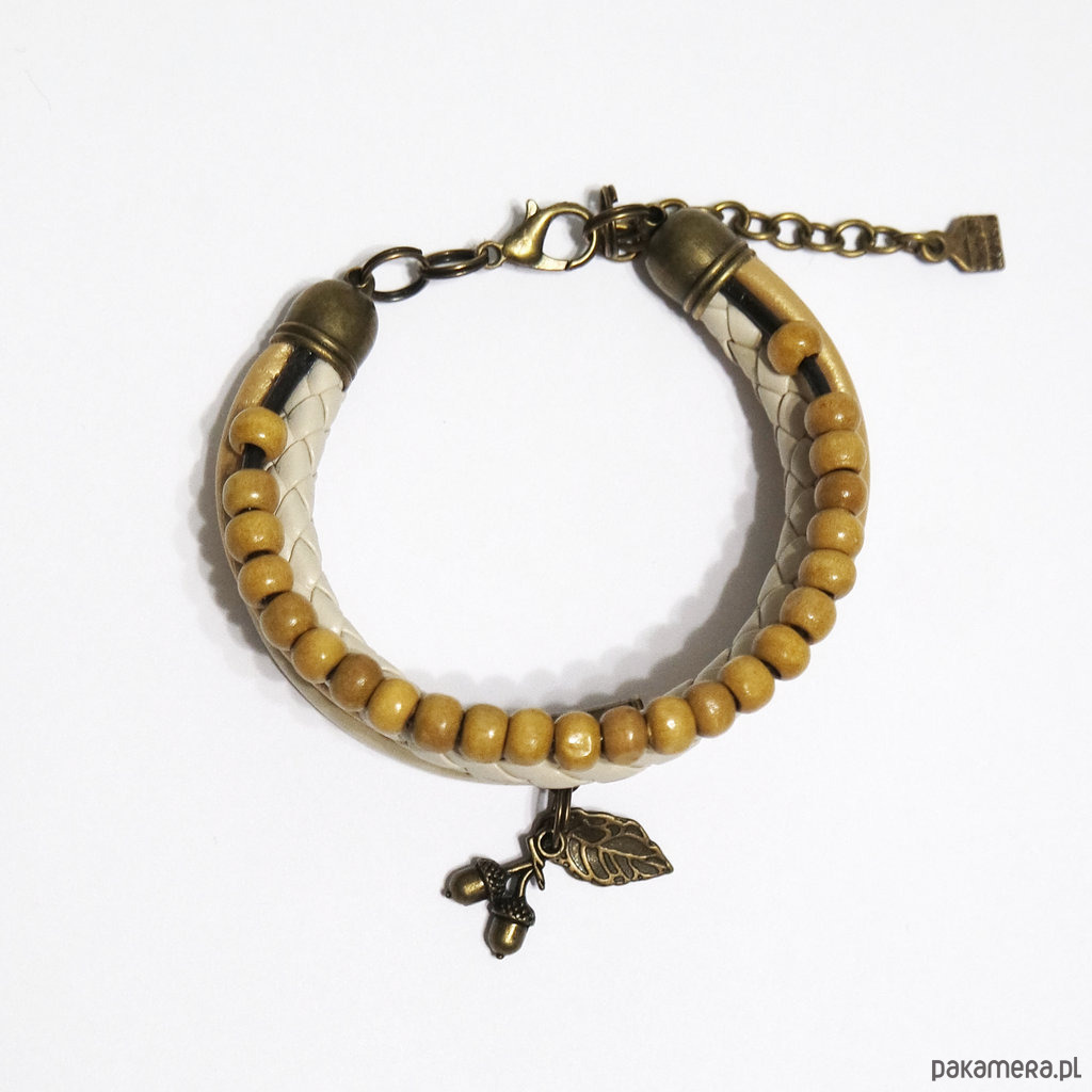 Bransoletka - Dębowa, koraliki drewniane - rzemienie