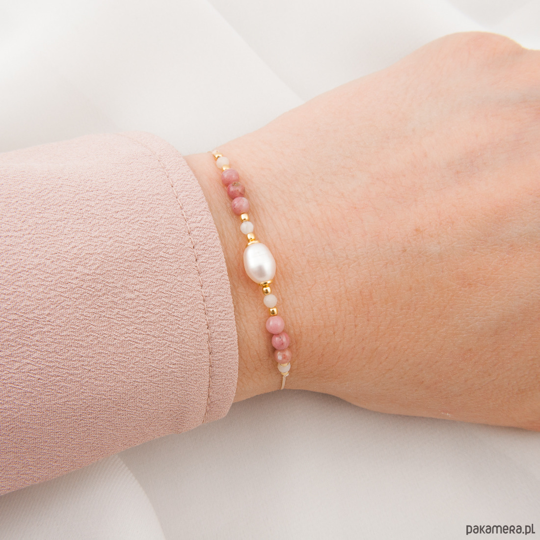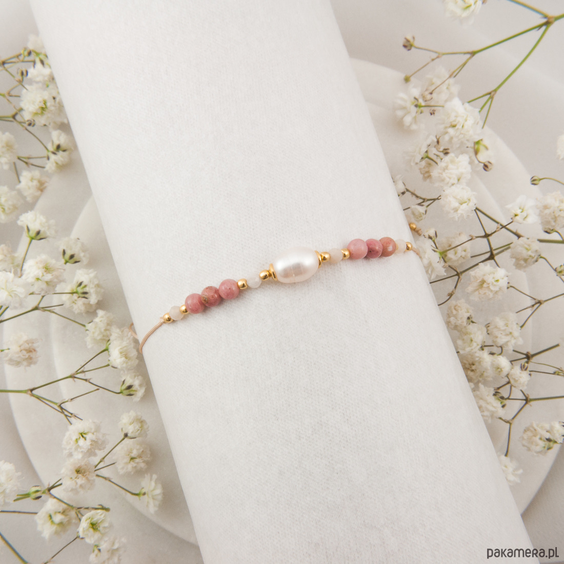 Wyjątkowy prezent dla ciężarnej, przyszłej mamy. Będziesz wspaniałą mamą. Personalizowana bransoletka z perłą, opalem i rodochrozytem.