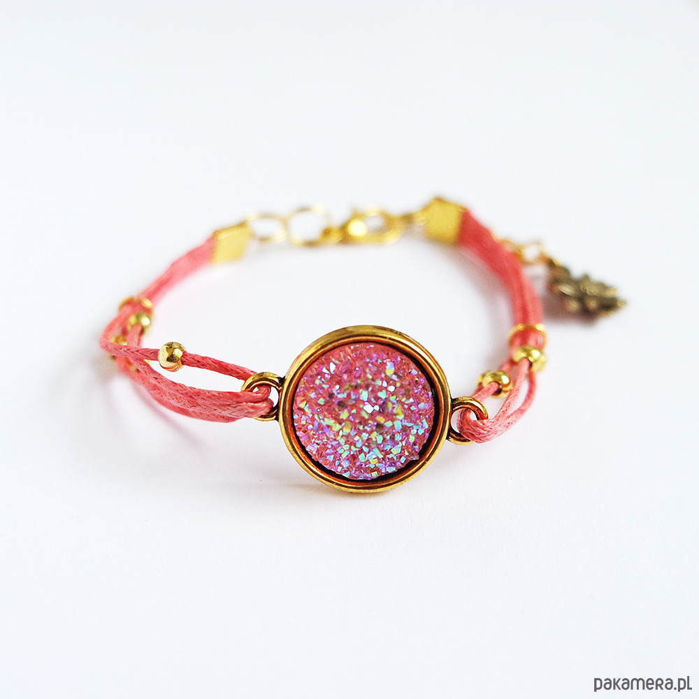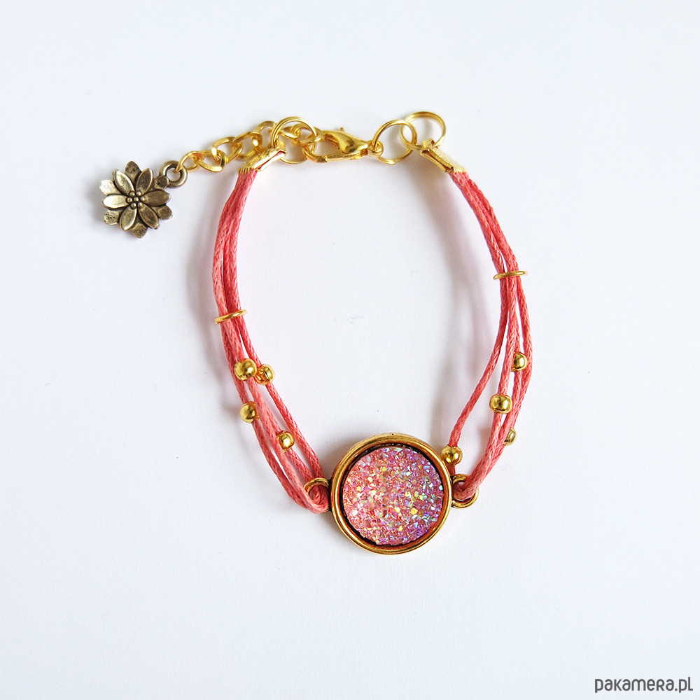 Bransoletka - Druzy różowe - malinowa, złota
