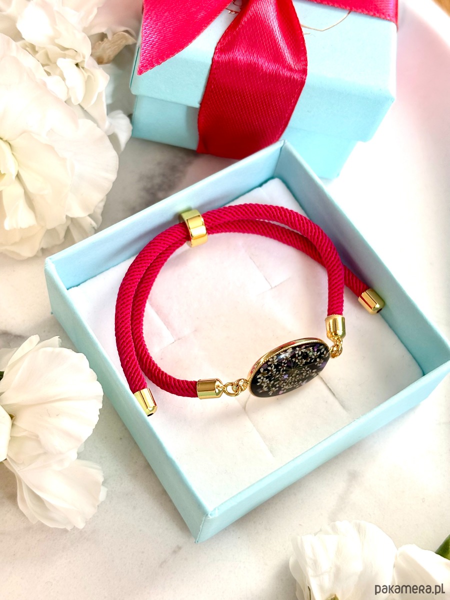 Ręcznie wykonana bransoletka z prawdziwych kwiatów i naturalnych elementów.