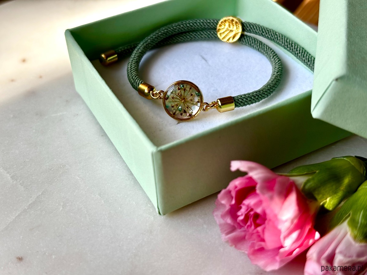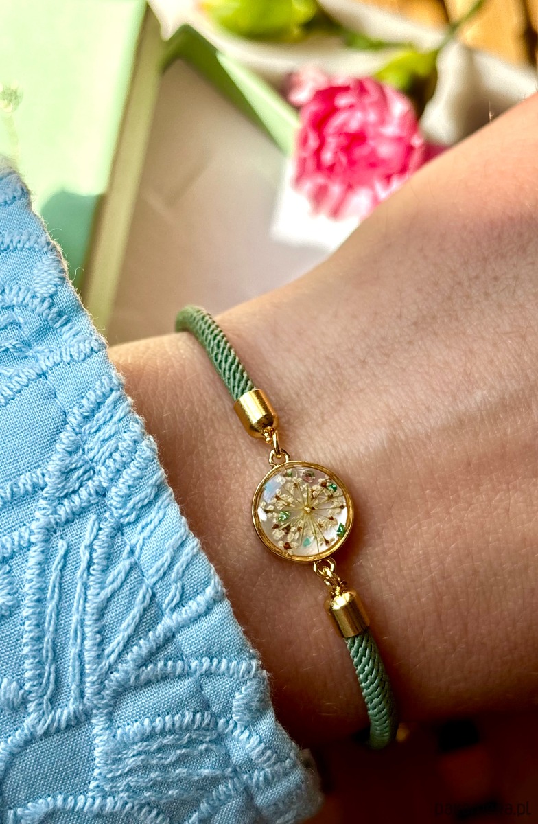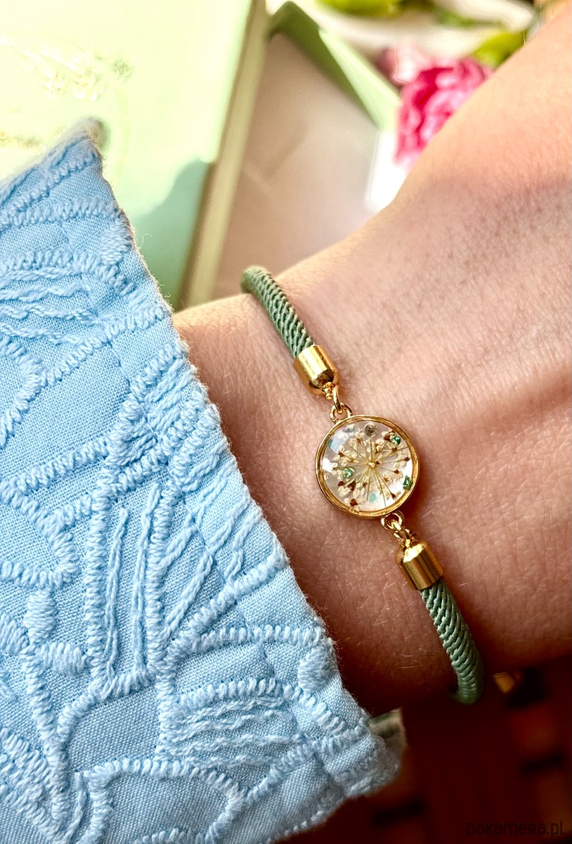 Bransoletka z suszonym kwiatem dzikiej marchwi na masie perłowej