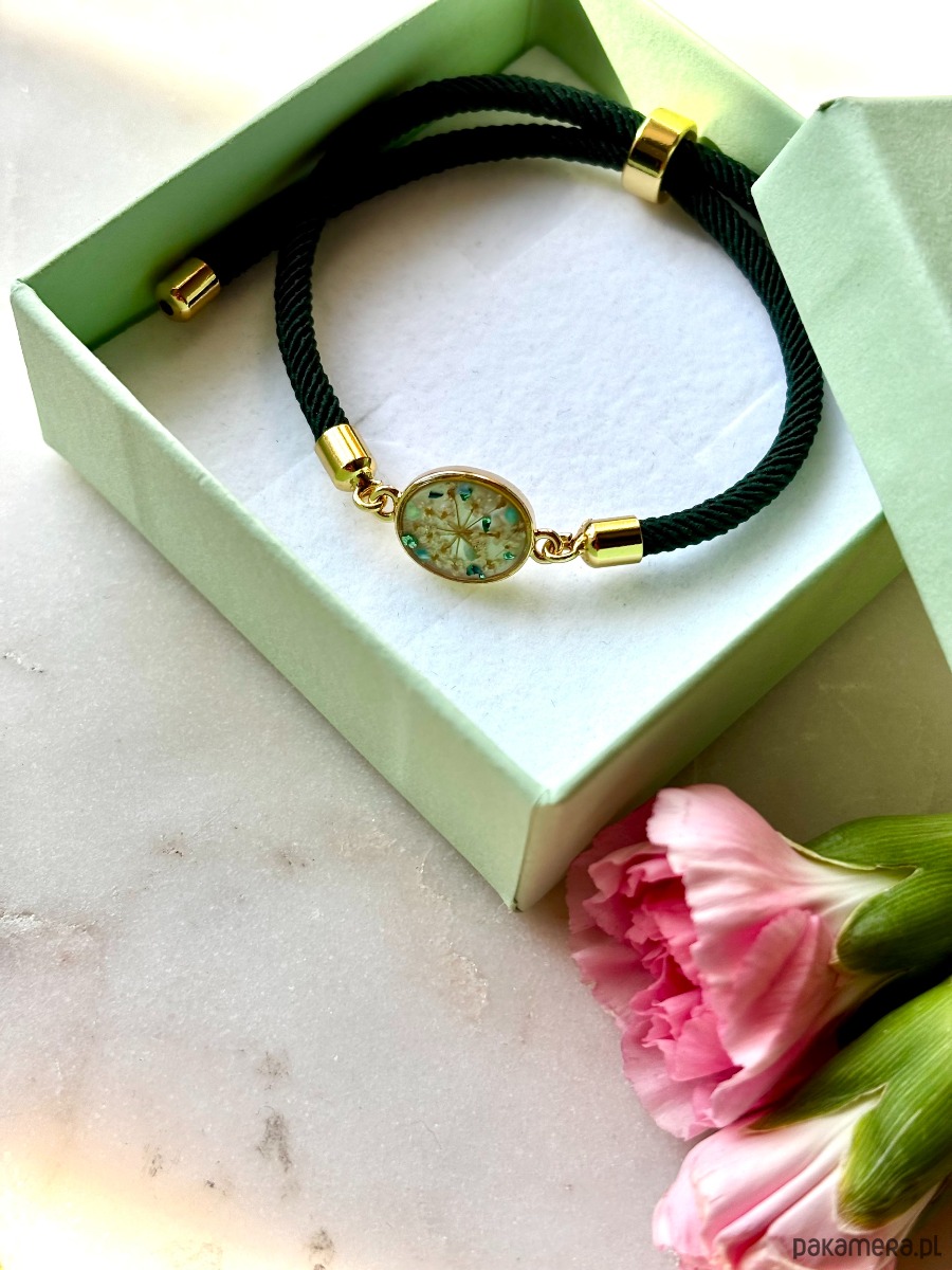 Bransoletka z suszonym kwiatem dzikiej marchwi na masie perłowej