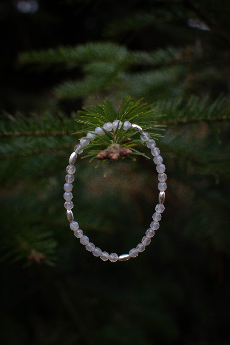 Materiały ~ elastyczna gumka jubilerska, agat szary lekko fasetowany, srebrne elementy ze stali szlachetnej.