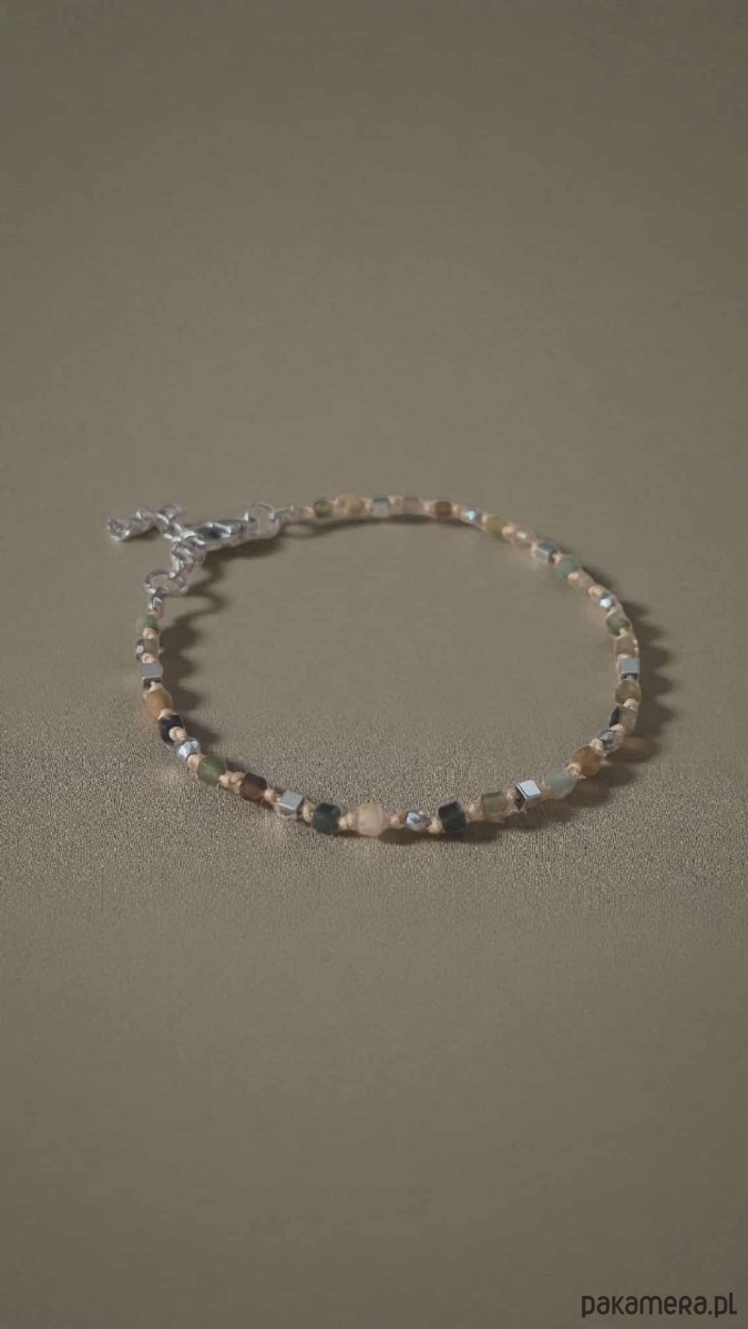 Bransoletka została wykonana ręcznie metodą supełkowania, dzięki czemu każdy kamień ma swoje miejsce, a całość prezentuje się lekko i stylowo.