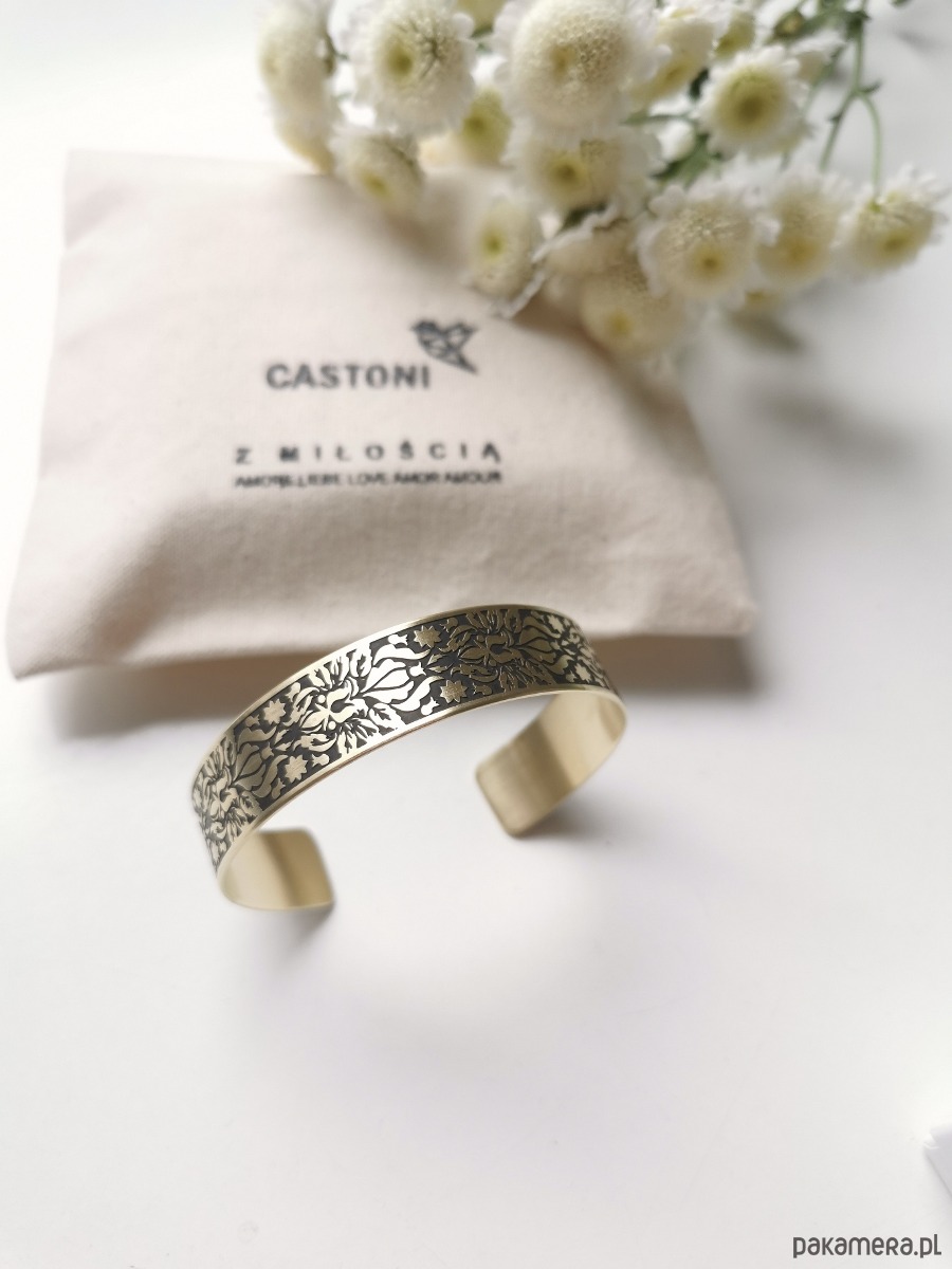Nowa bransoletka ma kolor jasno złoty, wraz z upływem czasu mosiądz nabiera szlachetnej barwy starego złota.