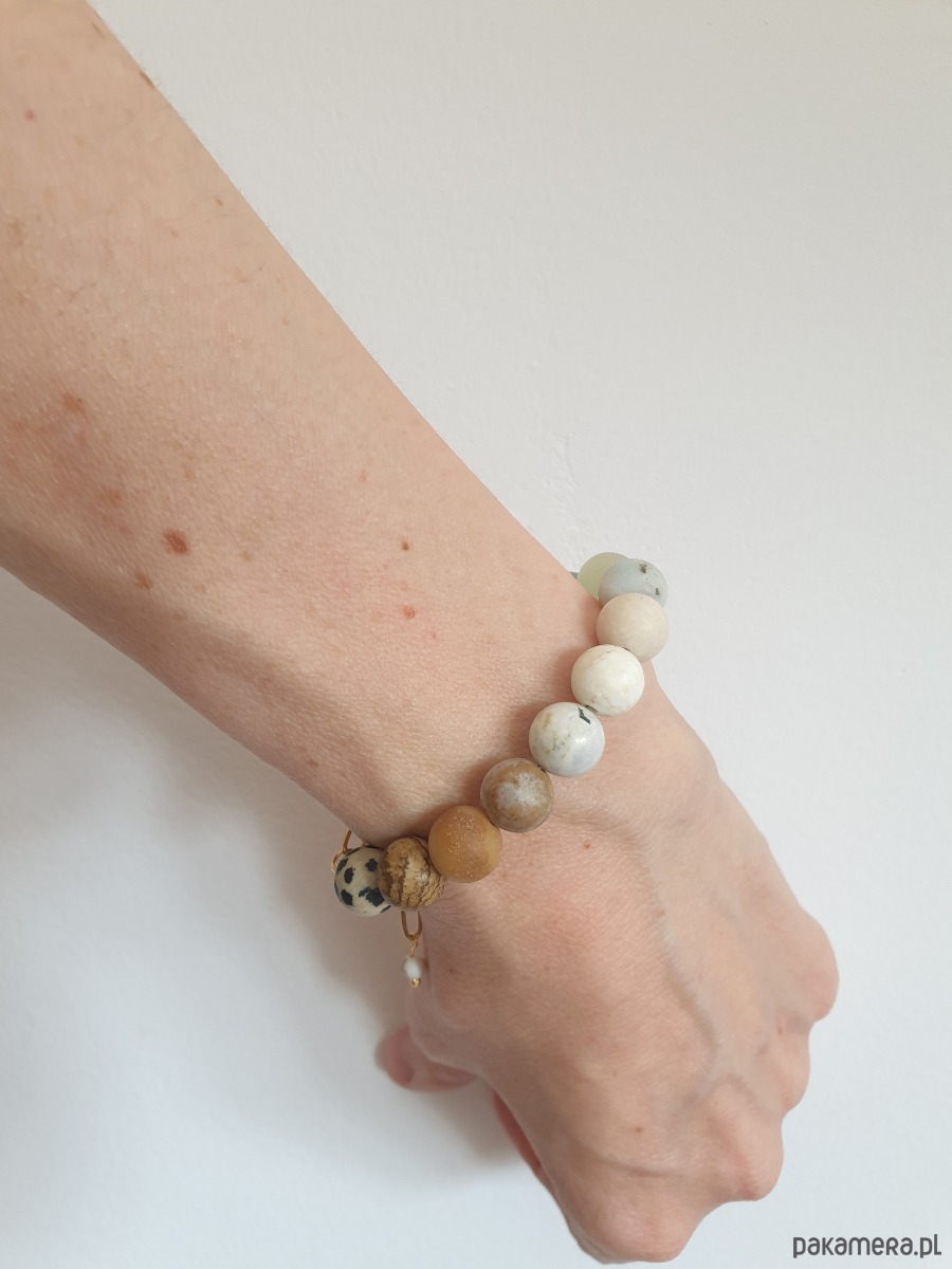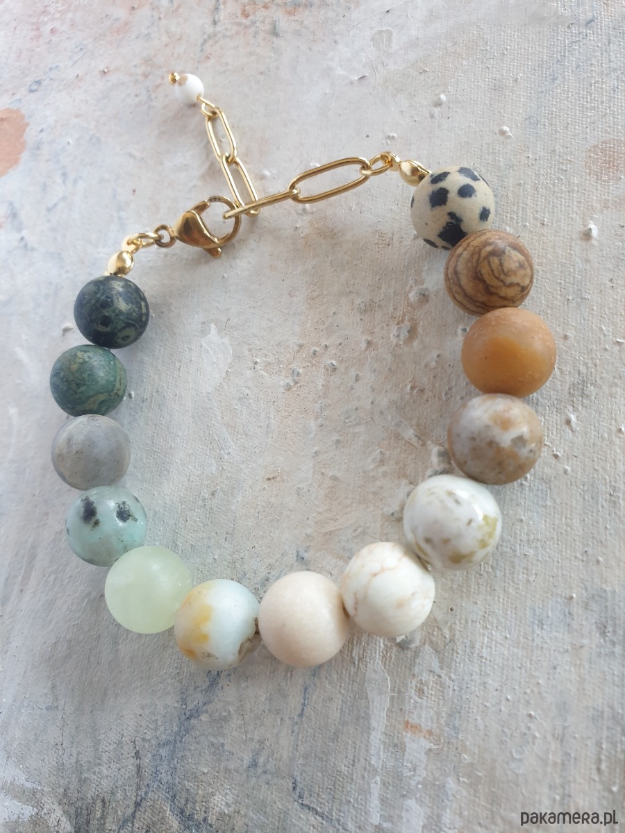 Bransoletka FANABERIA KULKI labradoryt, howlit, jaspis, amazonit. akwamaryn