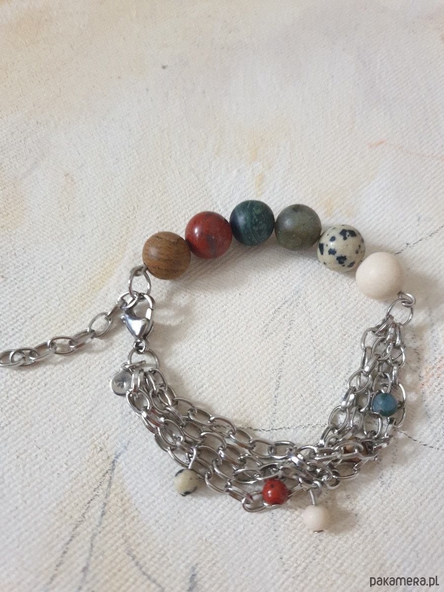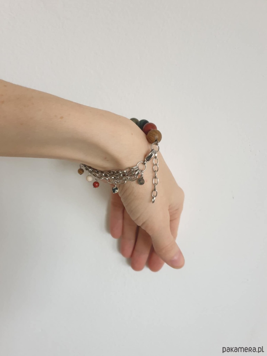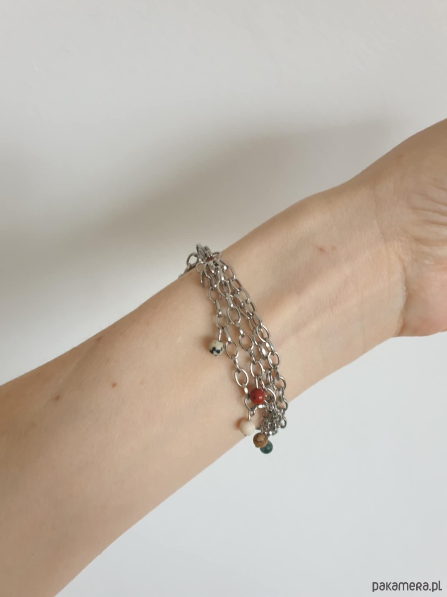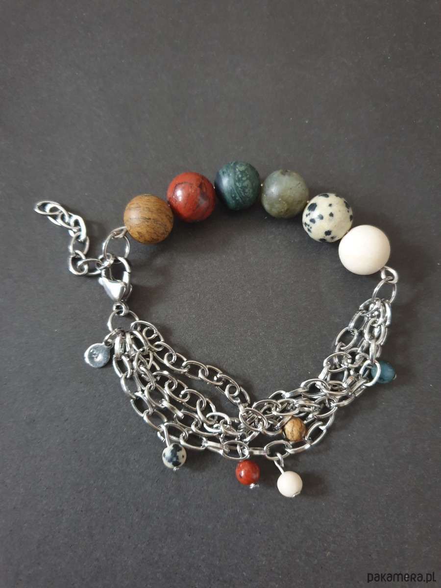 Bransoletka FANABERIA kulki, łańcuszki, jaspisy, labradoryt