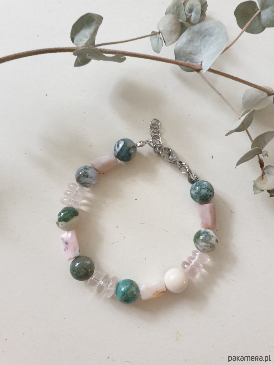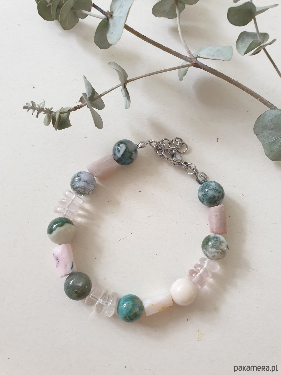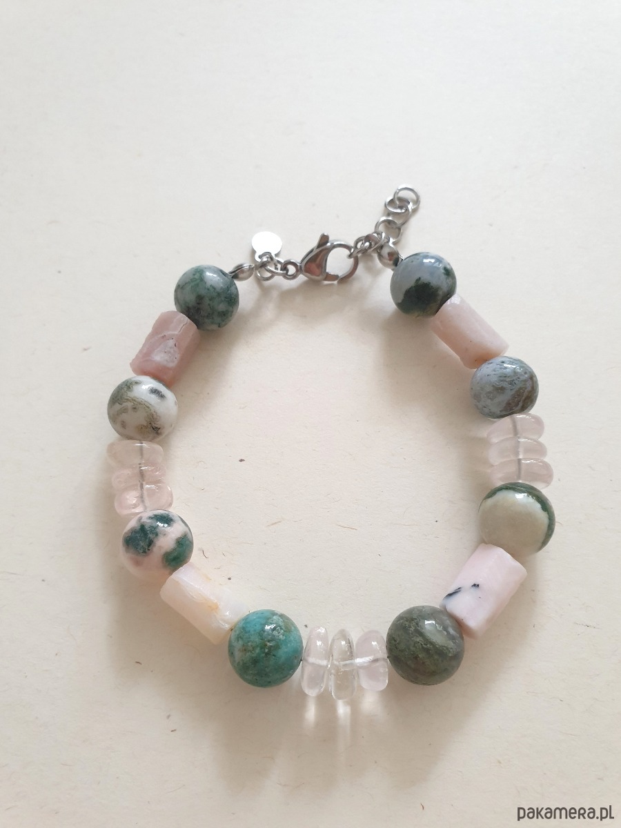 Bransoletka FANABERIA opal, kwarc różowy, agat mszysty