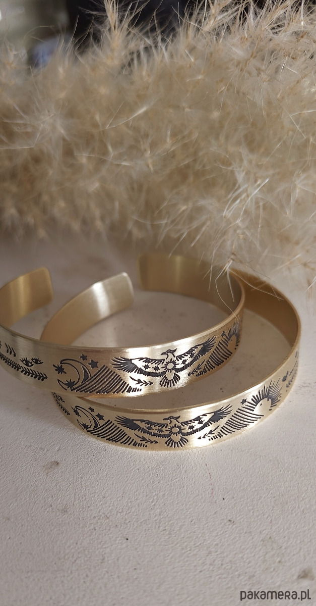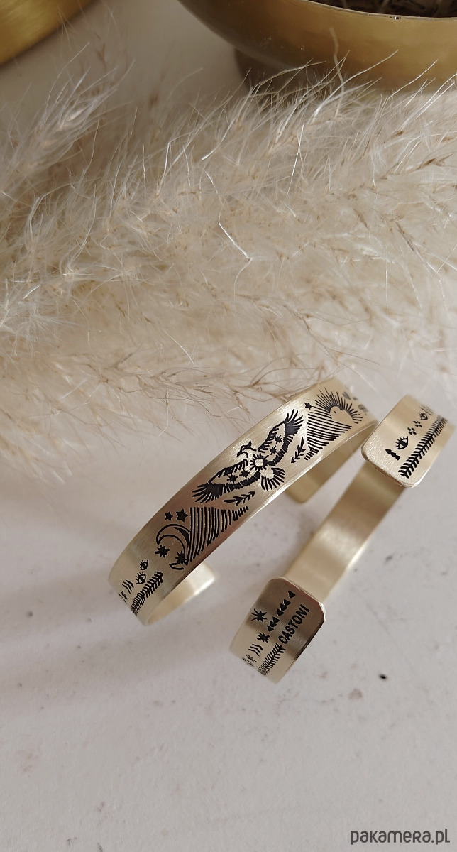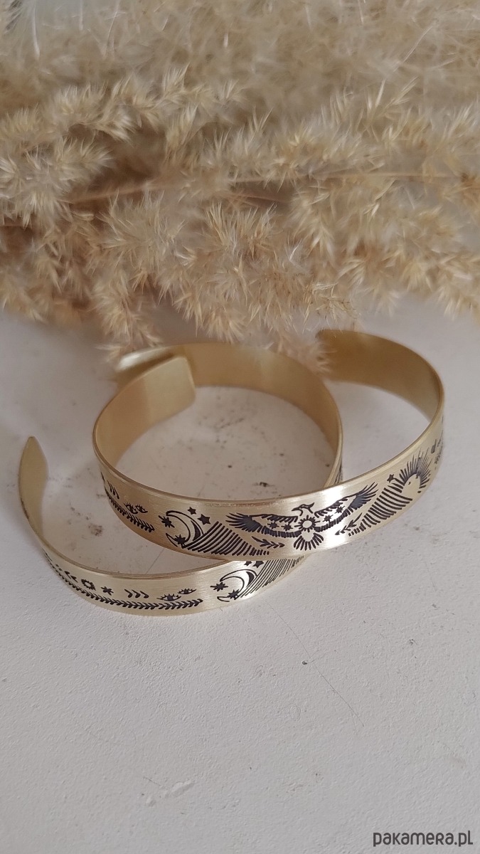 Nowa bransoletka ma kolor jasno złoty, wraz z upływem czasu mosiądz nabiera szlachetnej barwy starego złota.