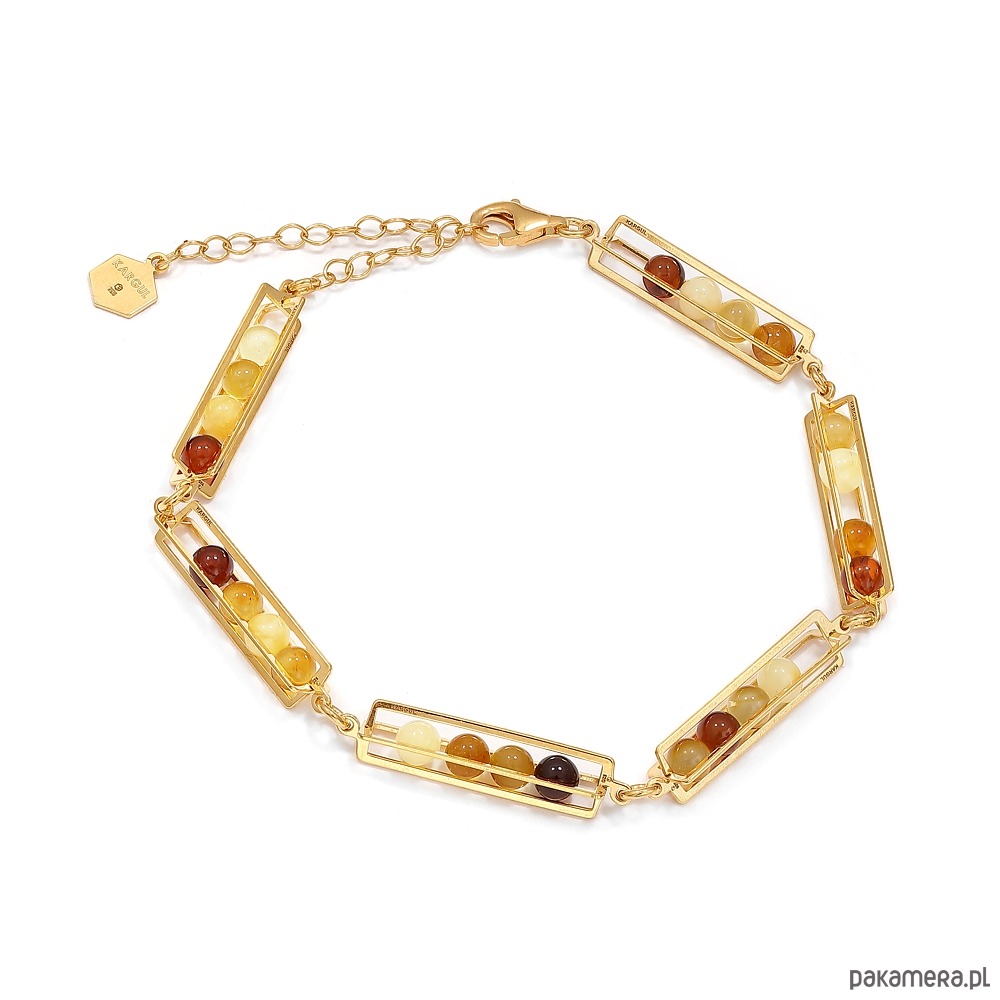 srebro 925, bursztyn bałtycki, śr. kulki 4mm, trwała warstwa 14k złota na powierzchni;