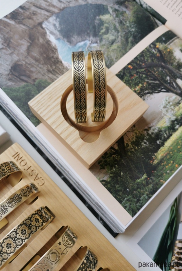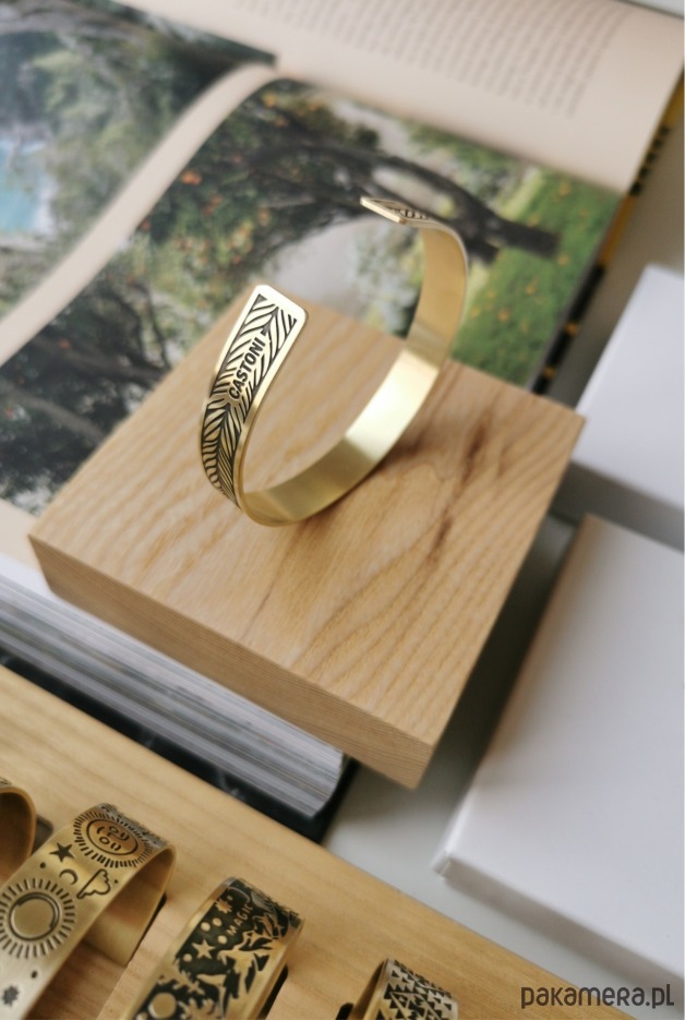 Nowa bransoletka ma kolor jasno złoty, wraz z upływem czasu mosiądz nabiera szlachetnej barwy starego złota.