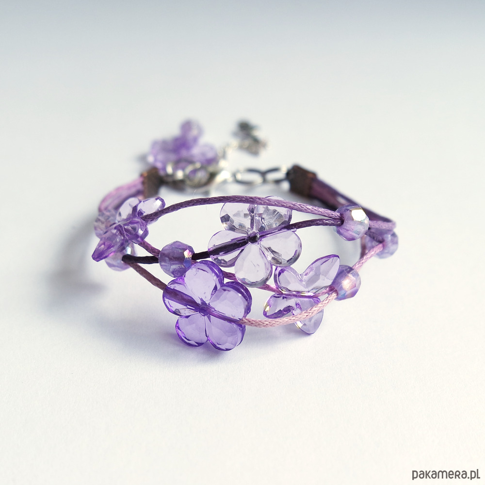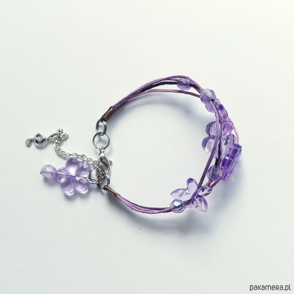 Bransoletka zrobiona jest z woskowanych sznureczków oraz koralików.