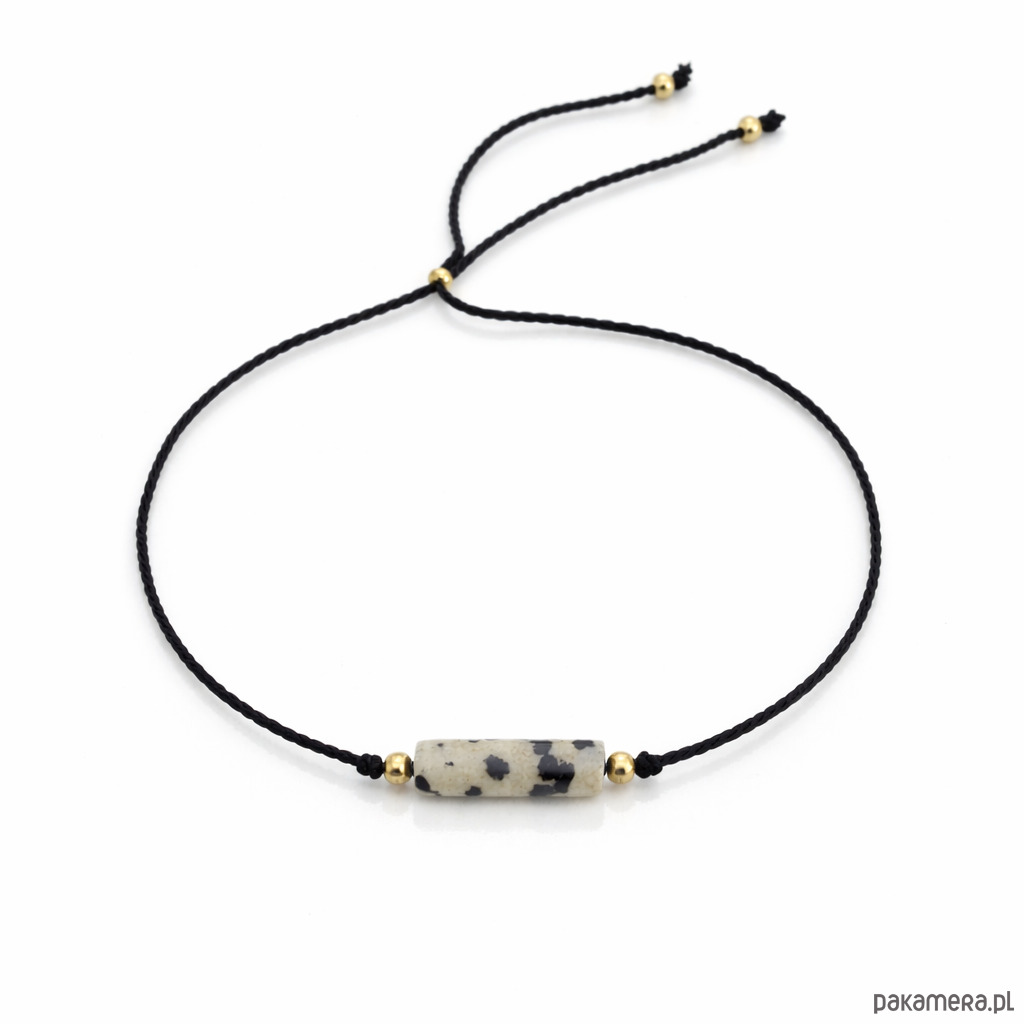 Minimalistyczna bransoletka z kolekcji FLOW, wykonana z nitki jedwabenj oraz naturalnego jaspisu dalmatyńskiego.