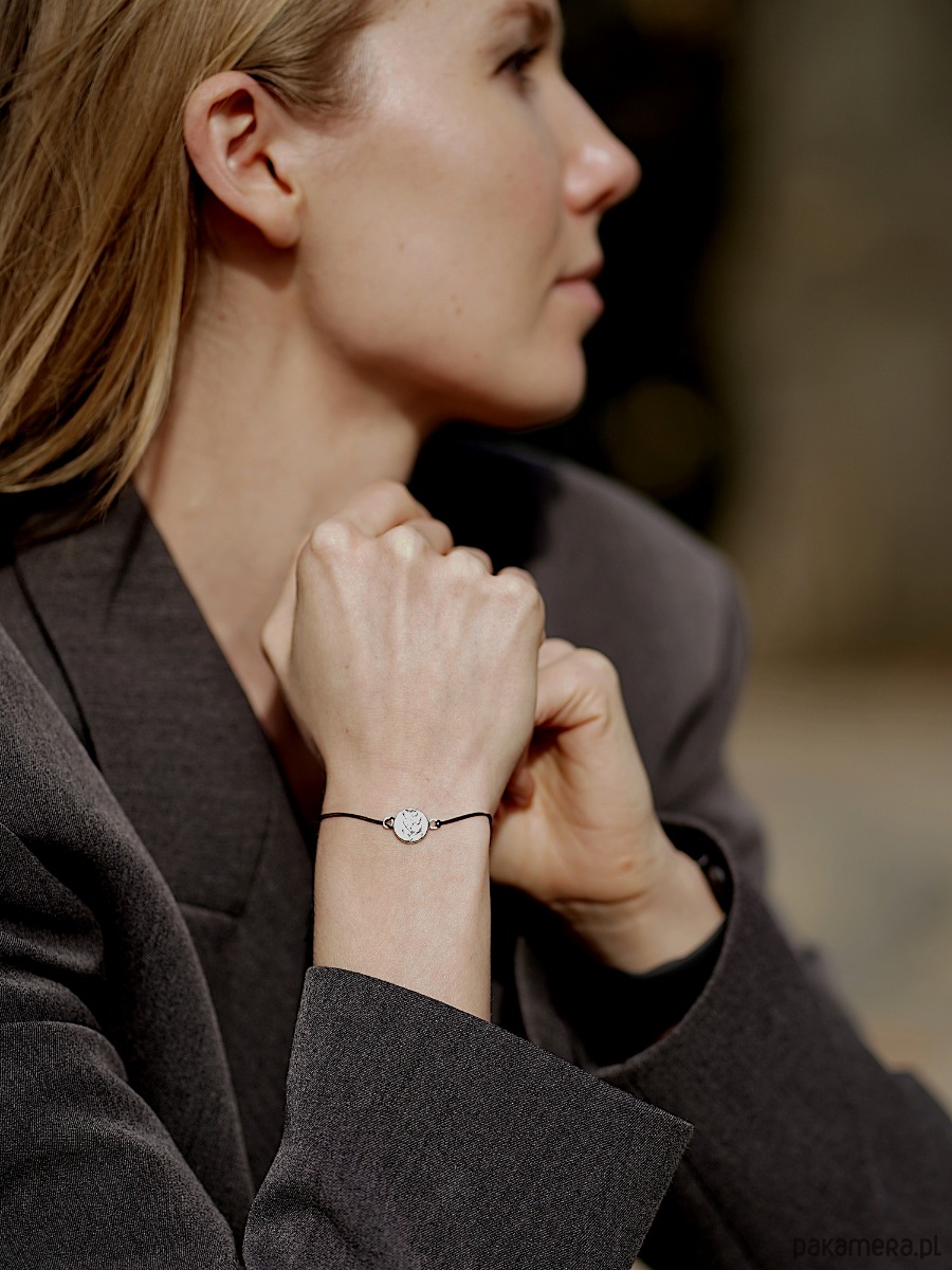 Element ozdobny został wykonany ręcznie ze srebra próby 925. Bransoletka jest również dostępna w wersji pozłacanej.
