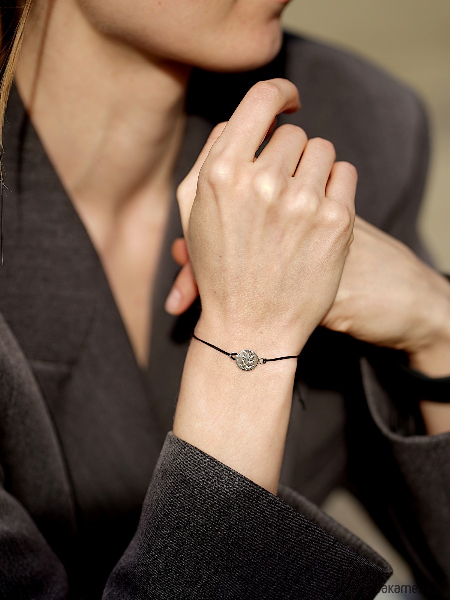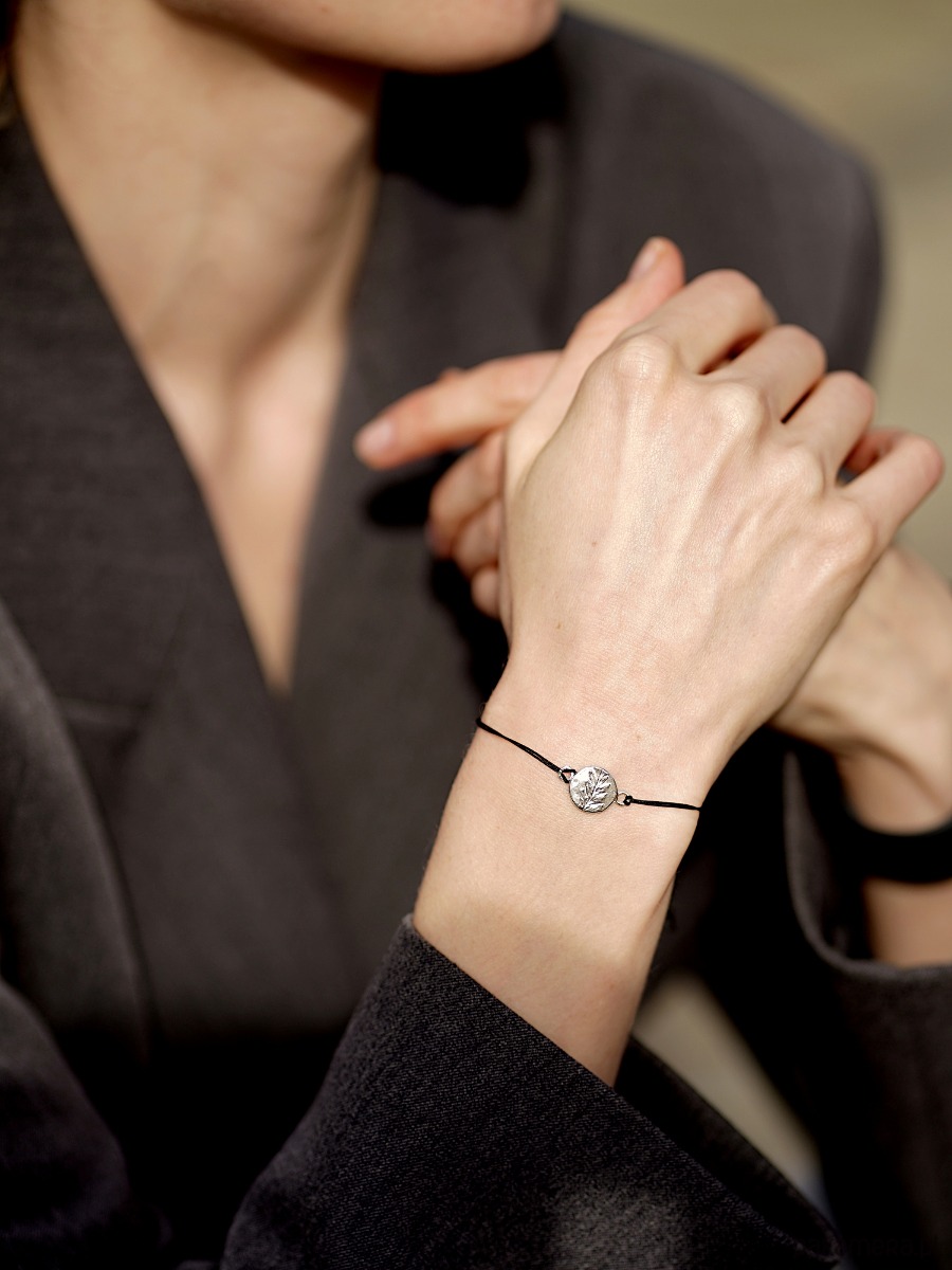 Motyw tej bransoletki przypomina roślinę odciśniętą w kamieniu. Jest delikatna i bezpretensjonalna. Pięknie lśni w słońcu podkreślając naturalną opaleniznę. Będzie doskonałym prezentem, ponieważ pasuje do wielu stylizacji.