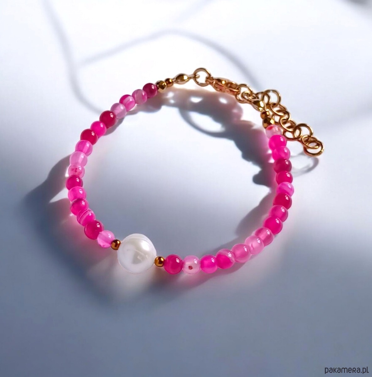 Bransoletka : fuchsia & pearl collection : agat i perła