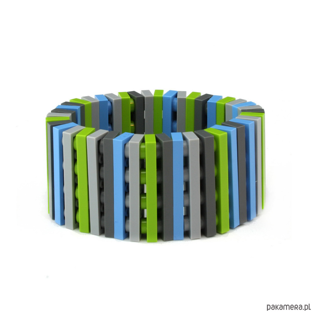 Bransoletka GENEVE. Wykonana z nowych klocków LEGO® w niepospolitych kolorach na bardzo wytrzymałej, silikonowej gumce. Bransoletka jest "miękka" i wygodna, układa się do ręki i nie "szczypie". Niezwykle lekka - waga tylko ok.30g. Szerokość 3,1 cm, obwód ok.17 cm.