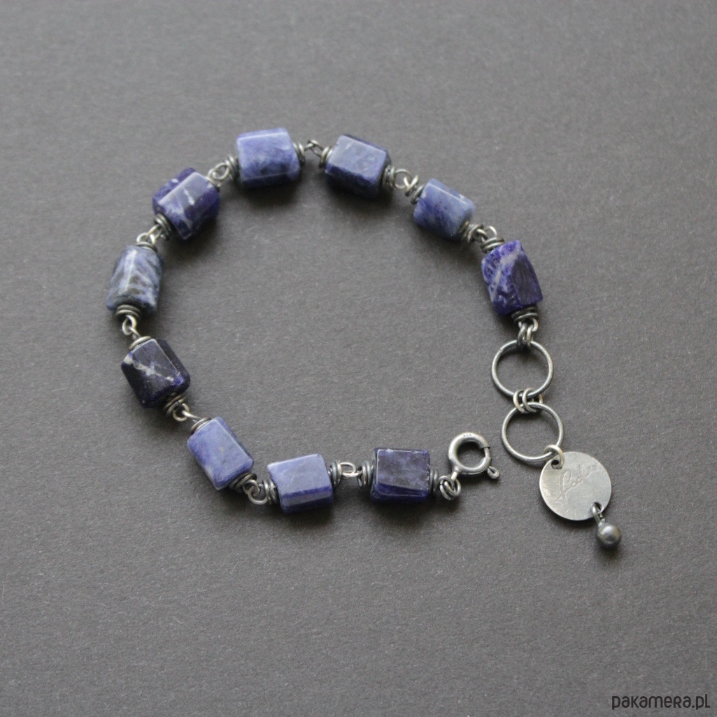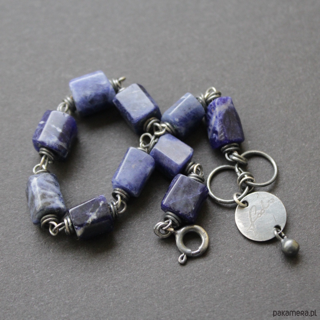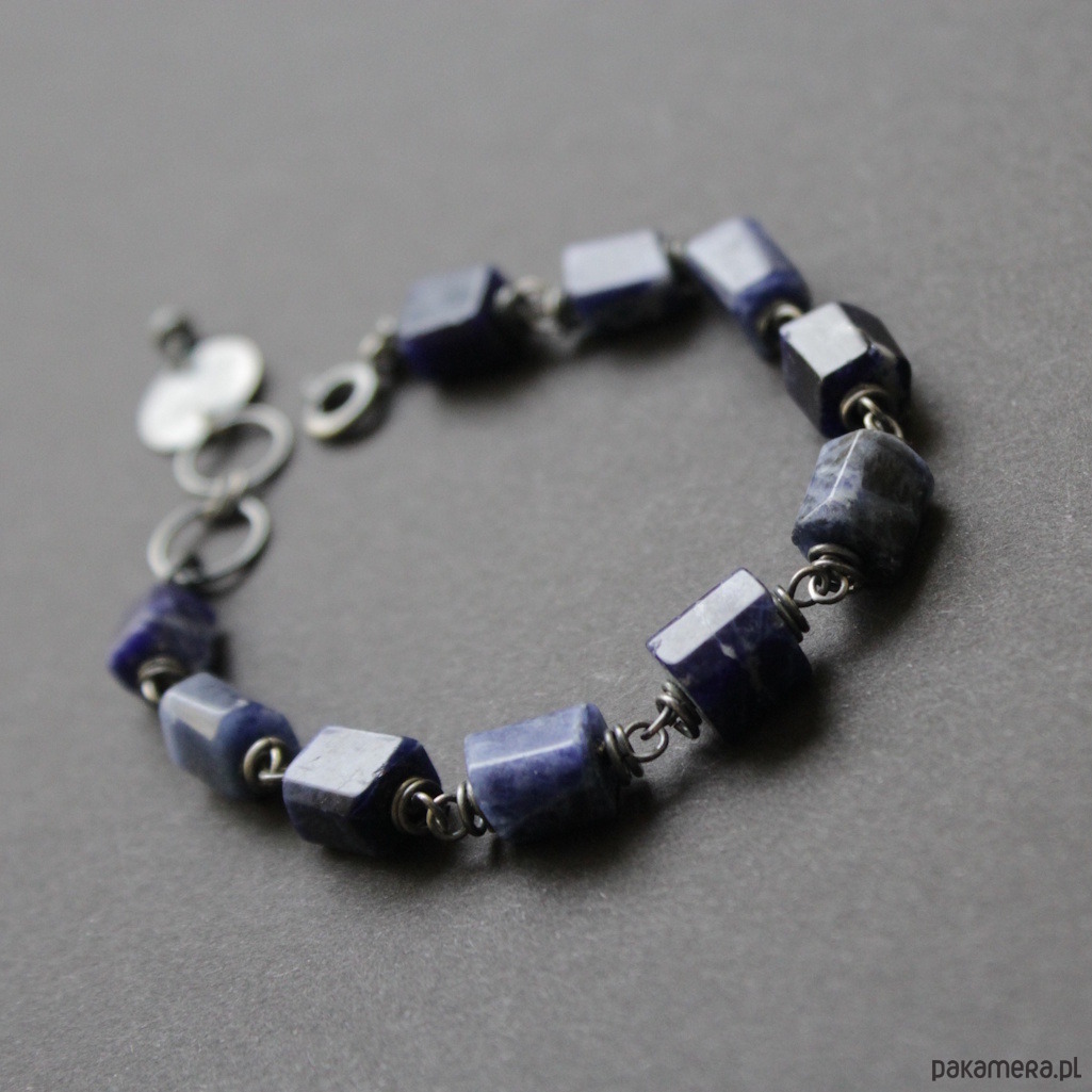 Bransoletka została wykonana z oksydowanego srebra próby 925 oraz pięknych granatowych sodalitów wielkości 0,7-0,9 cm.