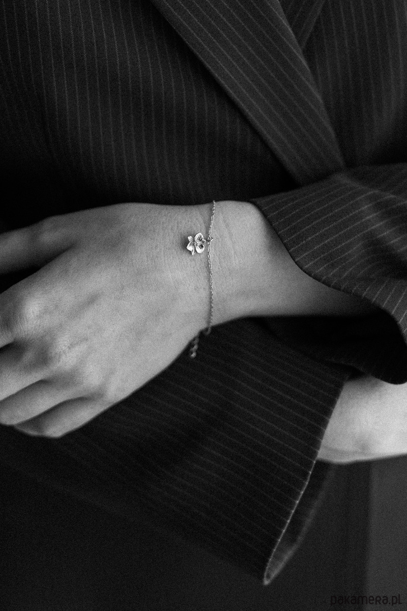 Elegancka bransoletka na cienkim, złoconym łańcuszku z uroczą zawieszką w kształcie kwiatu. Jej subtelny blask i romantyczny charakter sprawiają, że doskonale podkreśla kobiecą delikatność i naturalne piękno. To idealny wybór zarówno na co dzień, jak i na wyjątkowe okazje – pasuje do zwiewnych stylizacji, ale także dodaje klasy wieczorowym kreacjom.