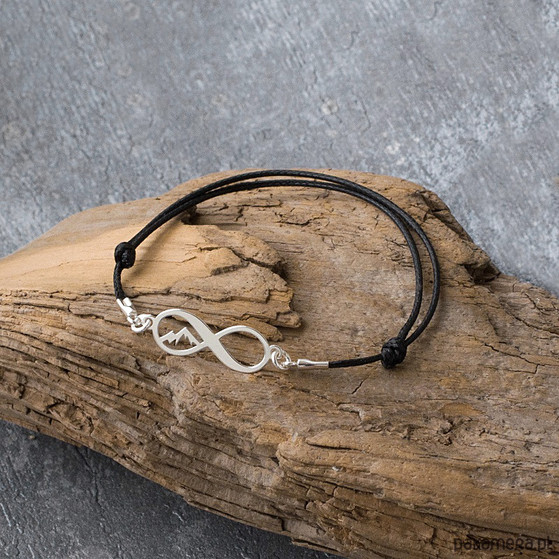Symbol nieskończoność z górami podkreśli zamiłowanie do wędrówek i natury.